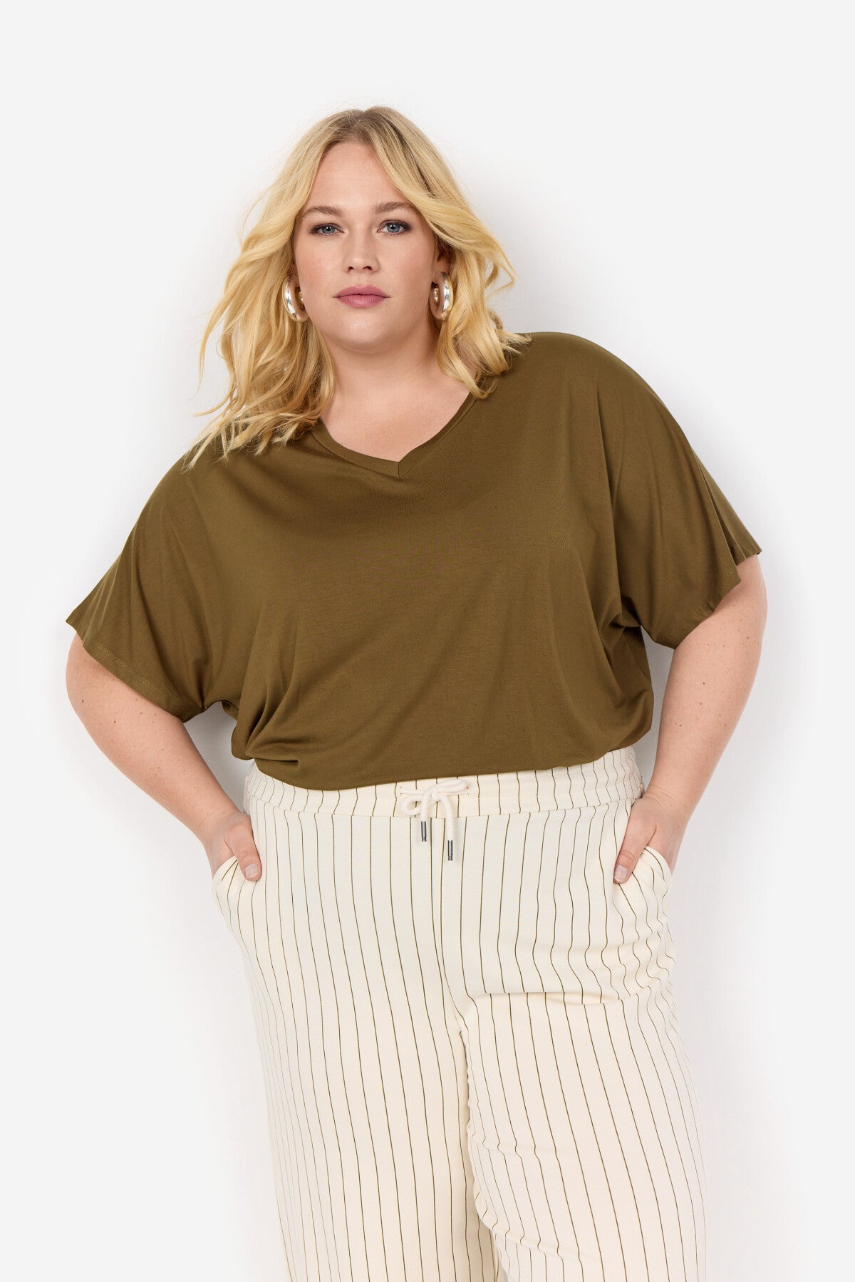 WA-Stella 3 är en enkel t-shirt tillverkad av en mjuk blandning av lyocell och elastan. T-shirten har en mjuk v-ringning, korta ärmar och en normal passform. Det här är ett måste i varje garderob och kan stylas med nästan vad som helst!