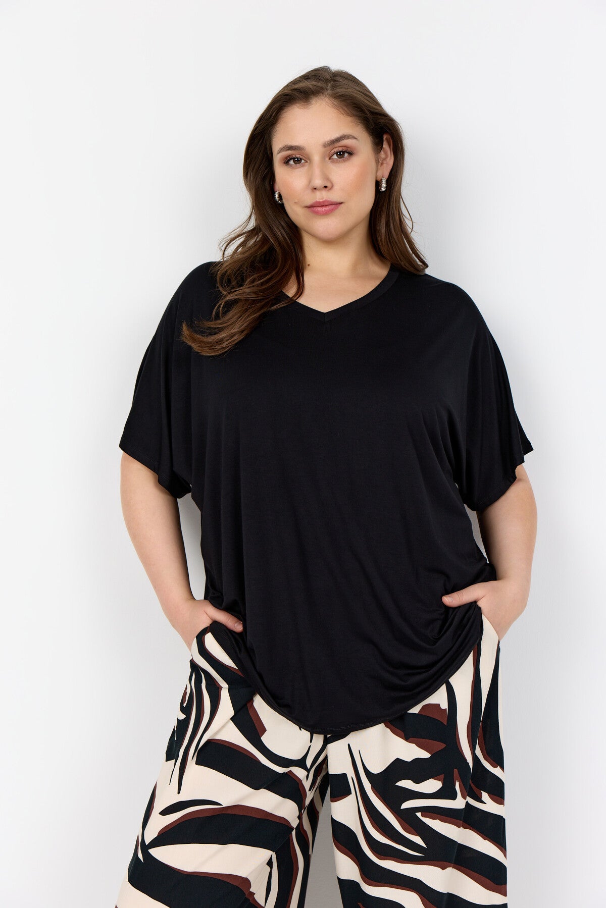 WA-STELLA 3 är en avslappnad T-shirt tillverkad i 93% Lyocell och 7% Elastan. Den har en mjuk V-ringning, en avslappnad passform och draperade korta ärmar för komfort. Denna eleganta blus kan enkelt matchas med skräddarsydda byxor eller dina favoritjeans för en cool, unik look.