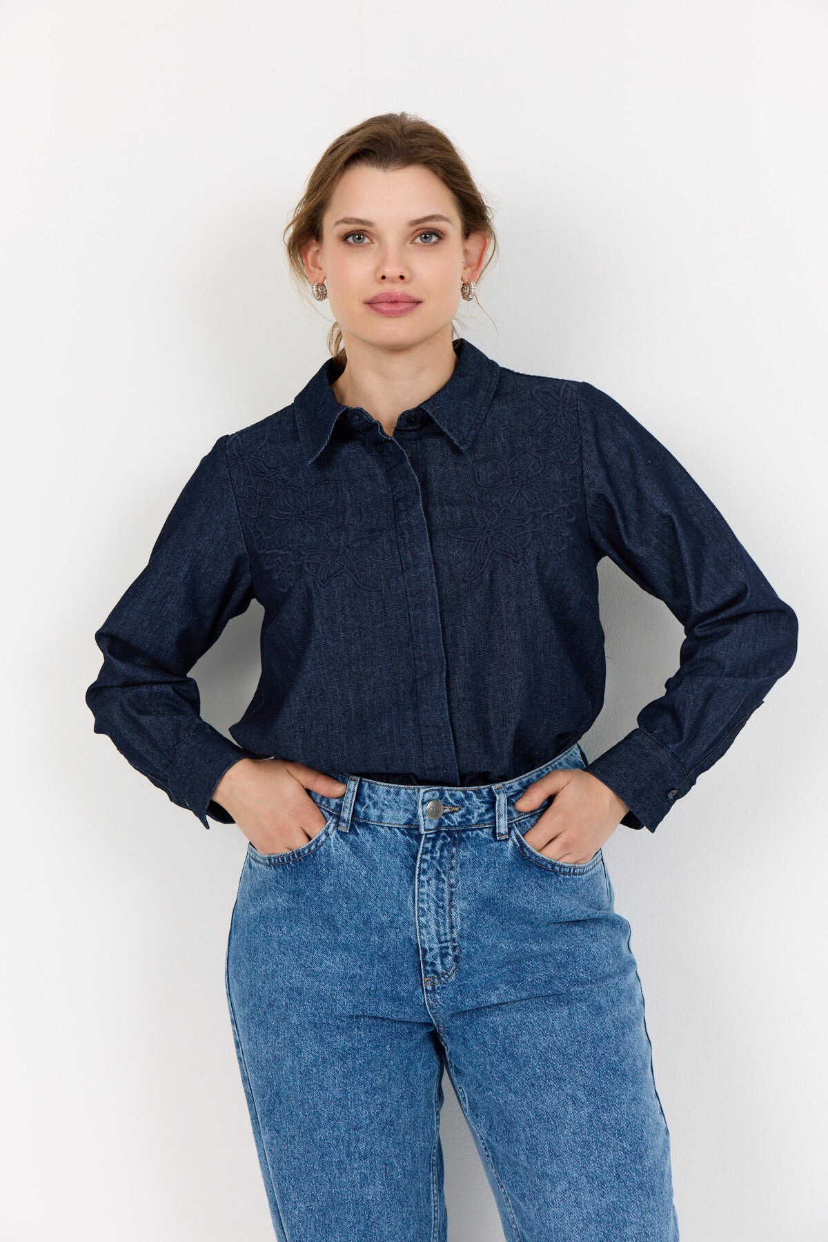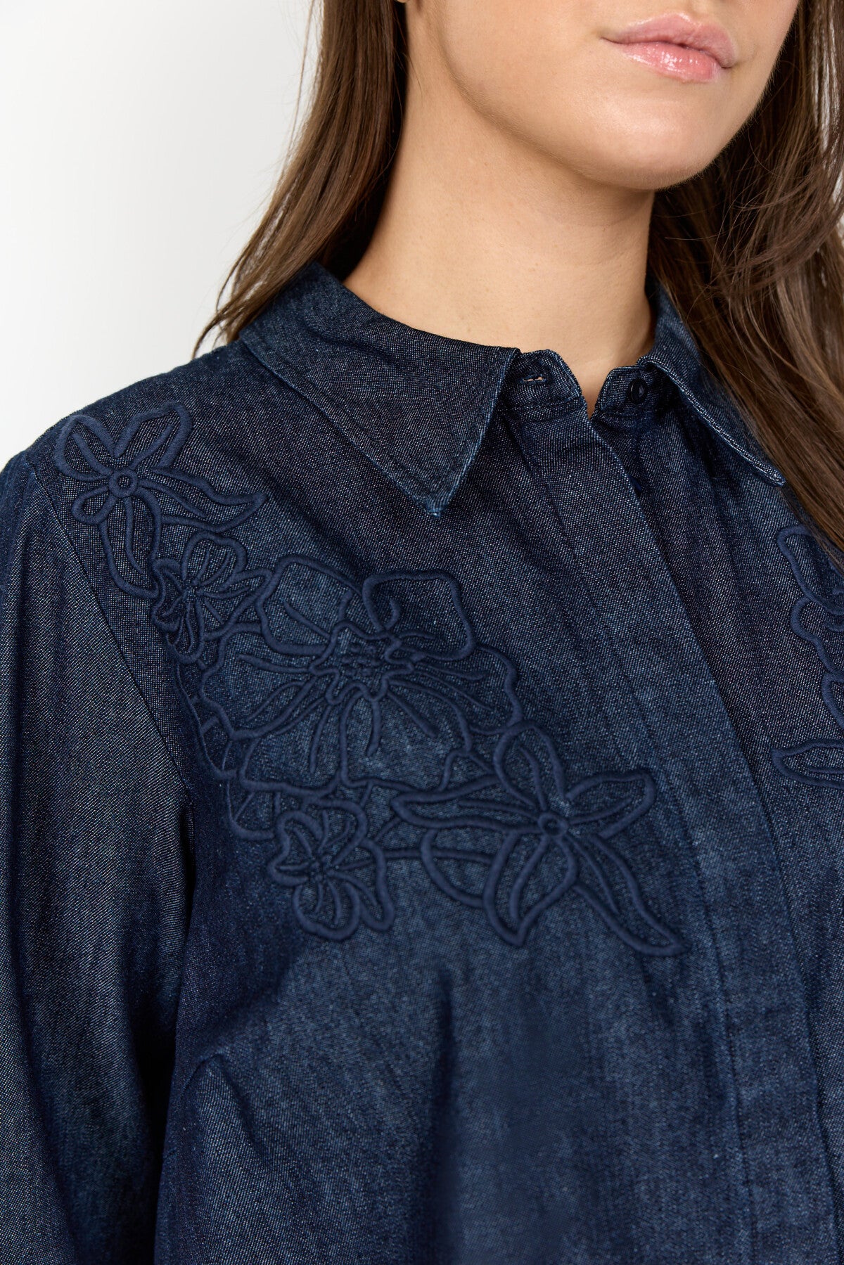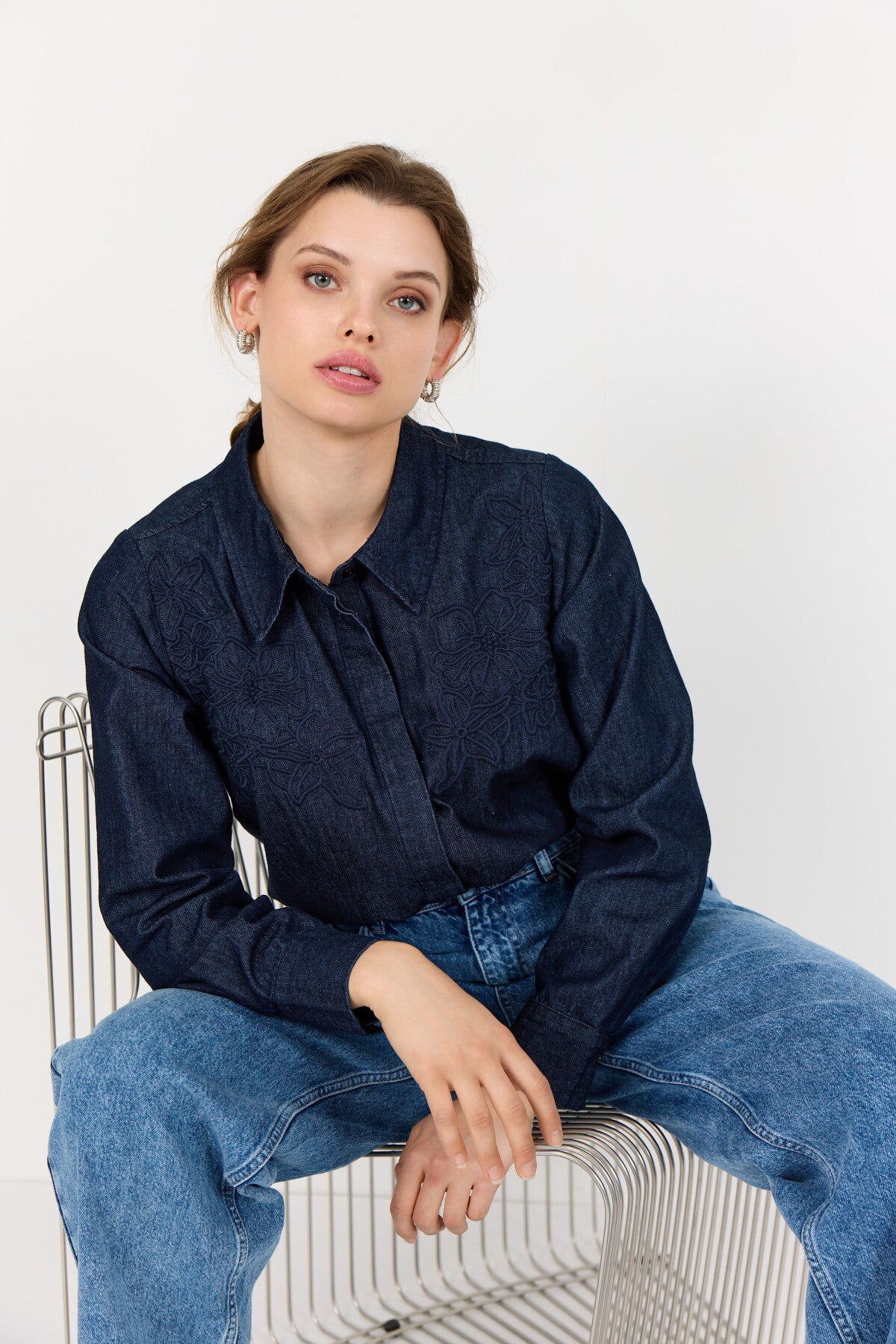 WA-CINDIA 2 är en klassisk skjorta som består av 75% bomull, 21% polyester och 4% viskos. Skjortan har en klassisk krage, knappslå framtill och ett elegant blomsterbroderi på bröstet samt en avslappnad passform. Kombinera den med skräddarsydda byxor eller en lång kjol för en sofistikerad look.