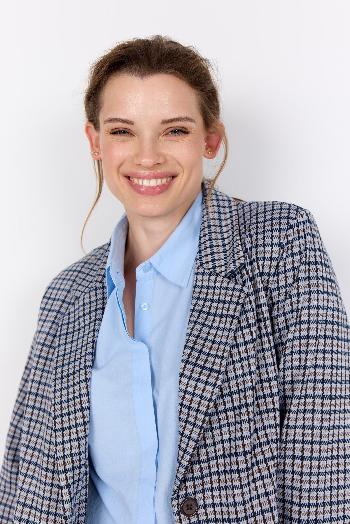 Anastasia är 171 cm hög och bär storlek 38;Hannah är 179 cm lång och bär storlek 42