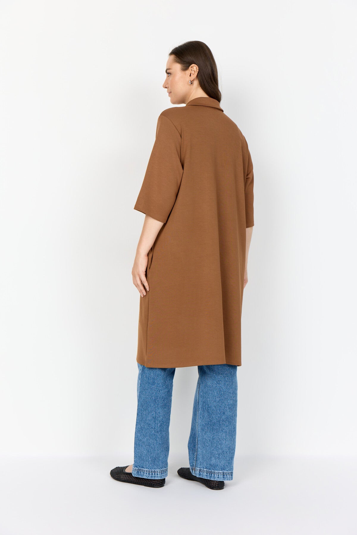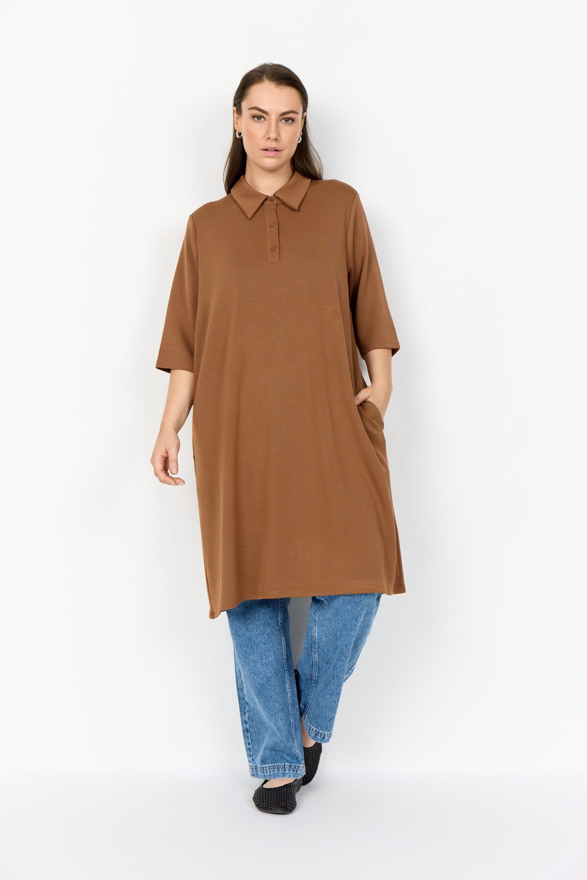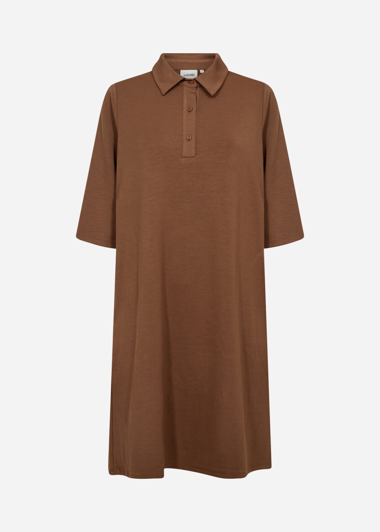 WA-SABINA 32 är en klassisk klänning tillverkad av 48% modal, 48% polyester, 4% elastan. Denna eleganta klänning har en klassisk krage, knäppning, medellånga ärmar och en medellång längd. Kombinera den med ankelstövlar eller över ett par jeans för en avslappnad vardagslook.