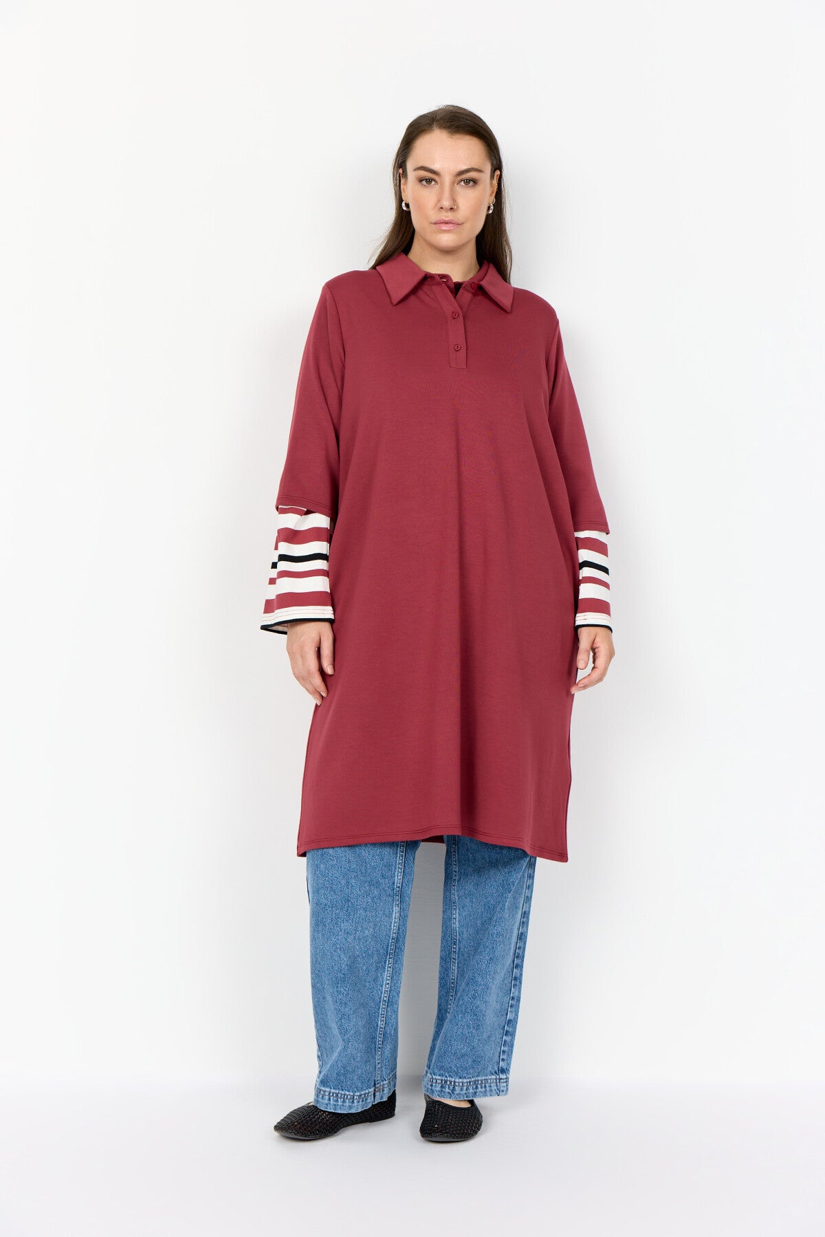 WA-SABINA 32 är en klassisk klänning tillverkad av 48% modal, 48% polyester, 4% elastan. Denna eleganta klänning har en klassisk krage, knäppning, medellånga ärmar och en medellång längd. Kombinera den med ankelstövlar eller över ett par jeans för en avslappnad vardagslook.