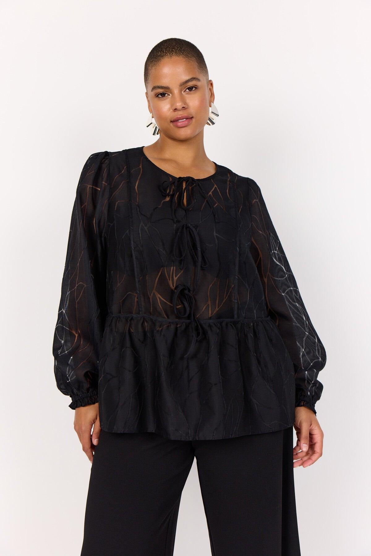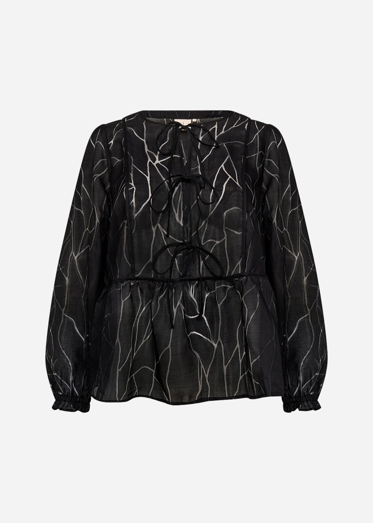 WA-SANNA 1 Blouse är tillverkad av 80% LENZING™ ECOVERO™ viskos och 20% återvunnen polyester. Den har ett unikt mönster med knutna halsringningar och långa ärmar, vilket ger en elegant silhuett. Kombinera denna coola blus med skräddarsydda byxor eller klassiska jeans för en snygg look.