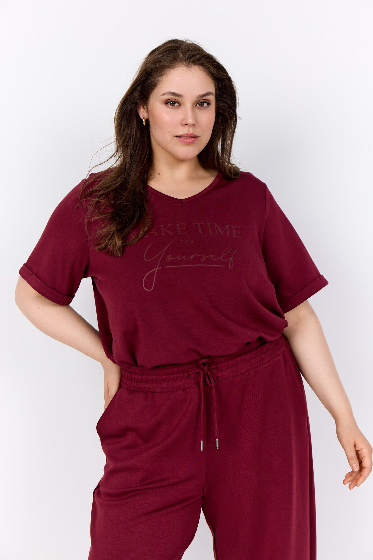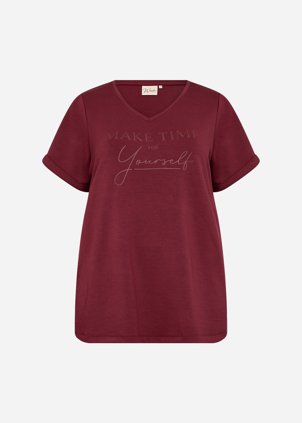 WA-SABINA 57 är en blus tillverkad av 48% modal, 48% polyester och 4% elastan. Blusen har V-ringad hals, korta ärmar med rullade muddar och ett inspirerande text-tryck på framsidan. Matcha den med jeans eller lediga byxor för en avslappnad look.