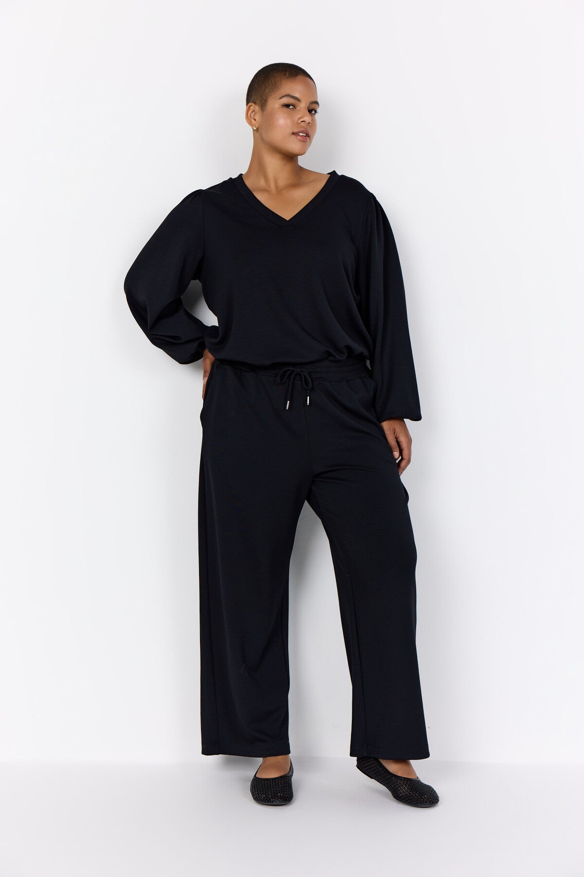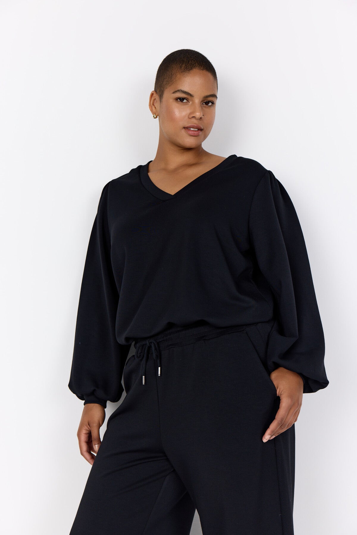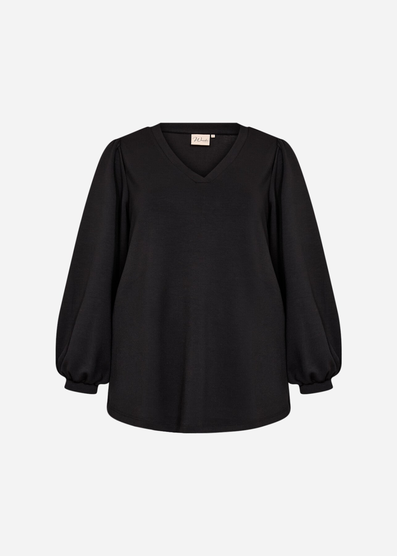 WA-SABINA 58 är en blus tillverkad av 48% modal, 48% polyester och 4% elastan. Den har en V-ringad halsringning med rynkade långa ärmar och elastiska manschetter. Matcha den med skräddarsydda byxor eller en elegant kjol för en snygg look.
