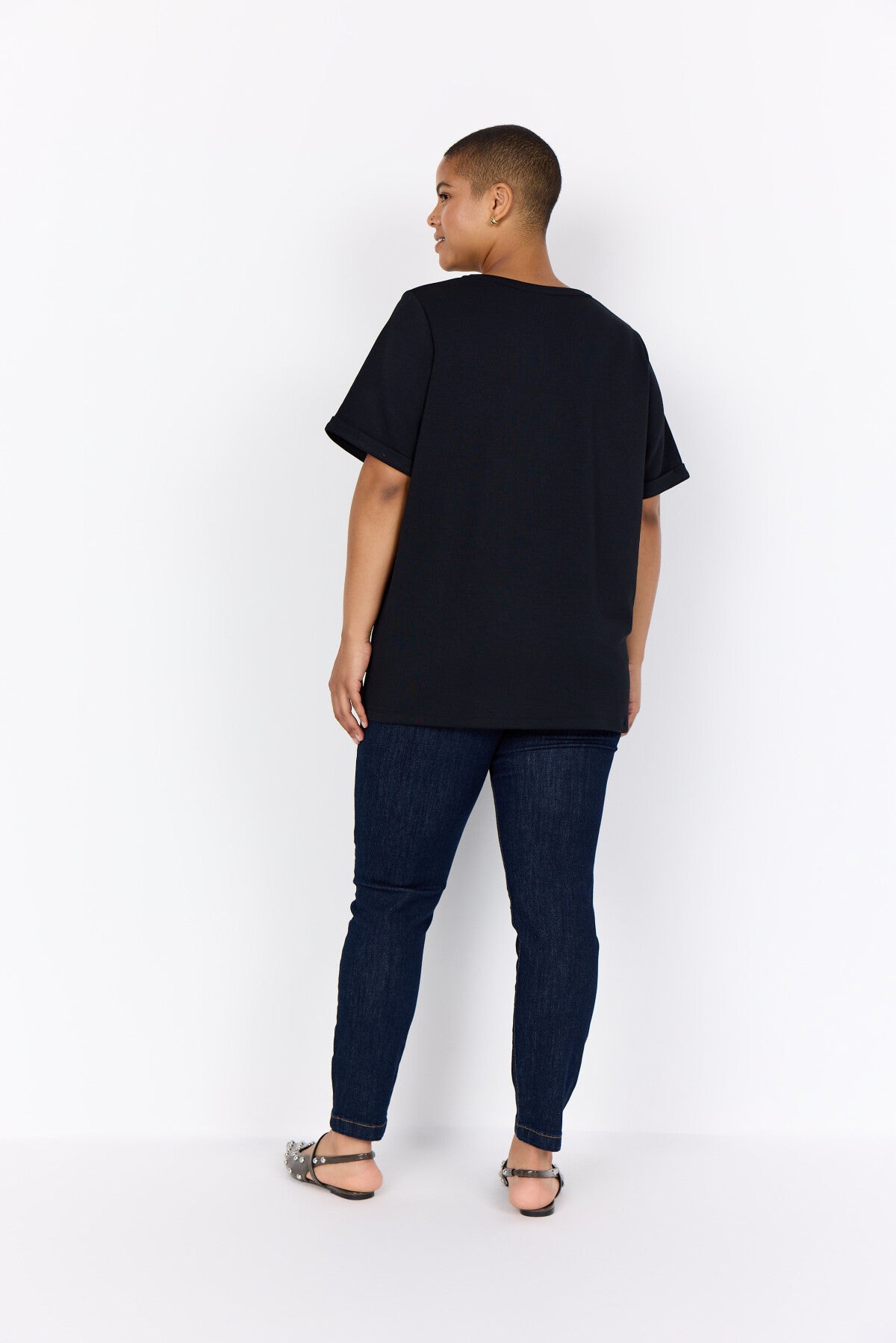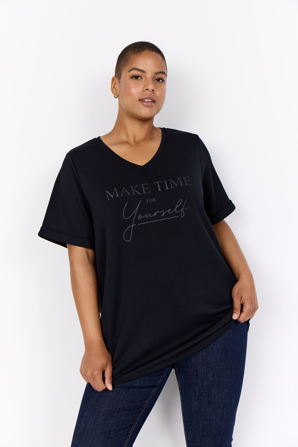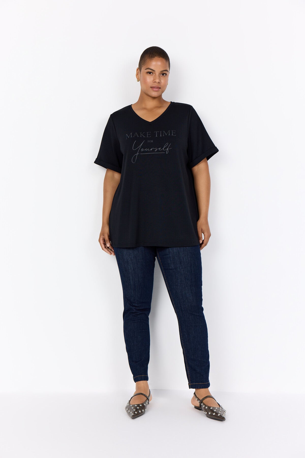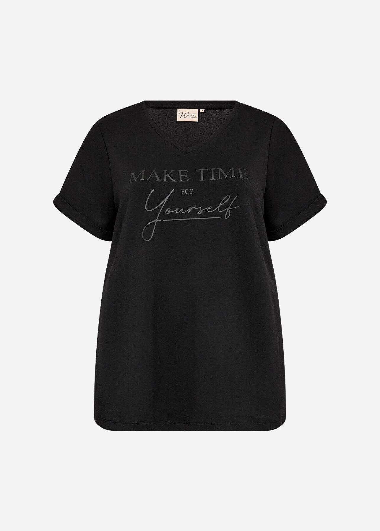 WA-SABINA 57 är en blus tillverkad av 48% modal, 48% polyester och 4% elastan. Blusen har V-ringad hals, korta ärmar med rullade muddar och ett inspirerande text-tryck på framsidan. Matcha den med jeans eller lediga byxor för en avslappnad look.