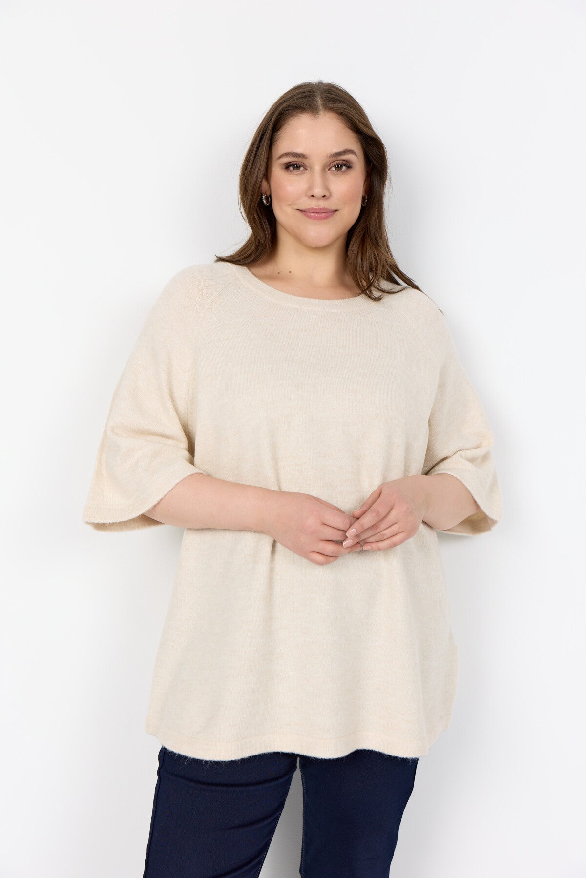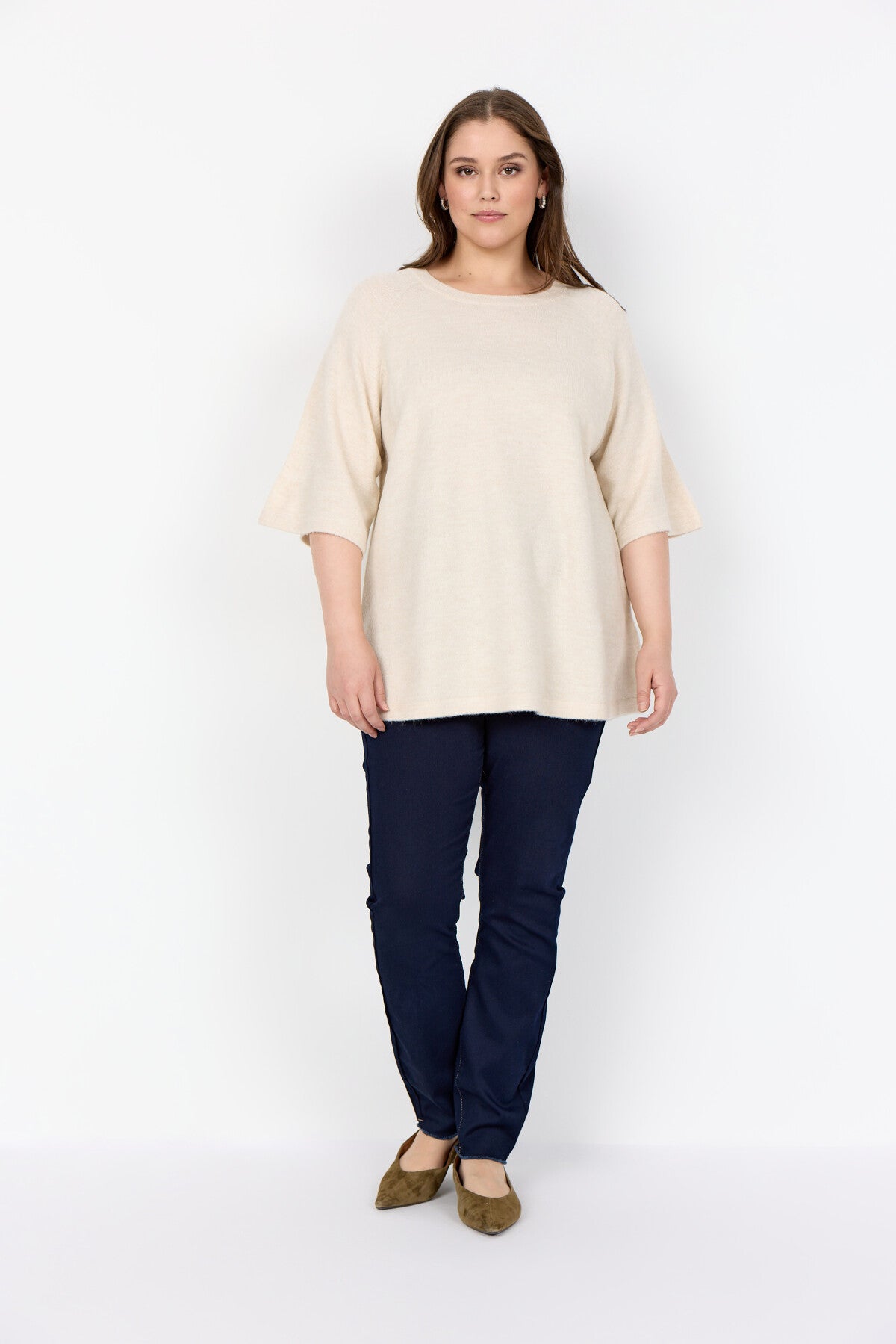 Bella är 176 cm hög och bär en str. 46