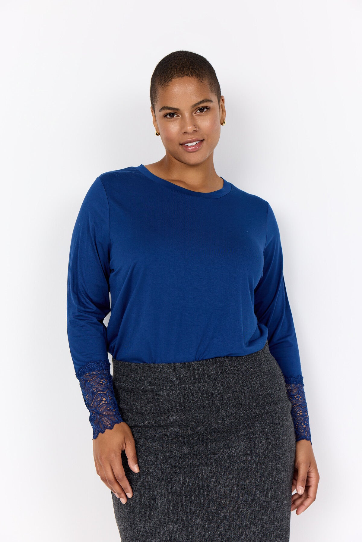 WA-STELLA 24 T-shirt är tillverkad av 93% Lyocell och 7% Elastan. Den har spetsmuddar och en klassisk rund halsringning med en bekväm passform. Styla den med skräddarsydda byxor eller en lång kjol för en raffinerad look.