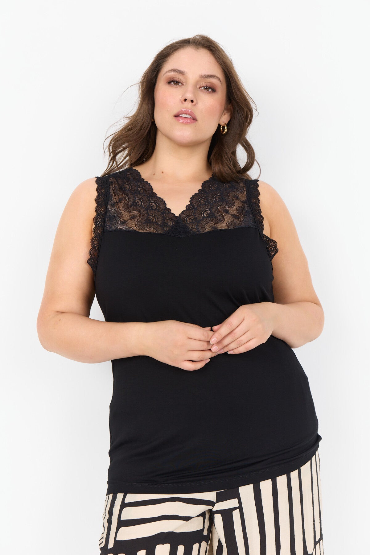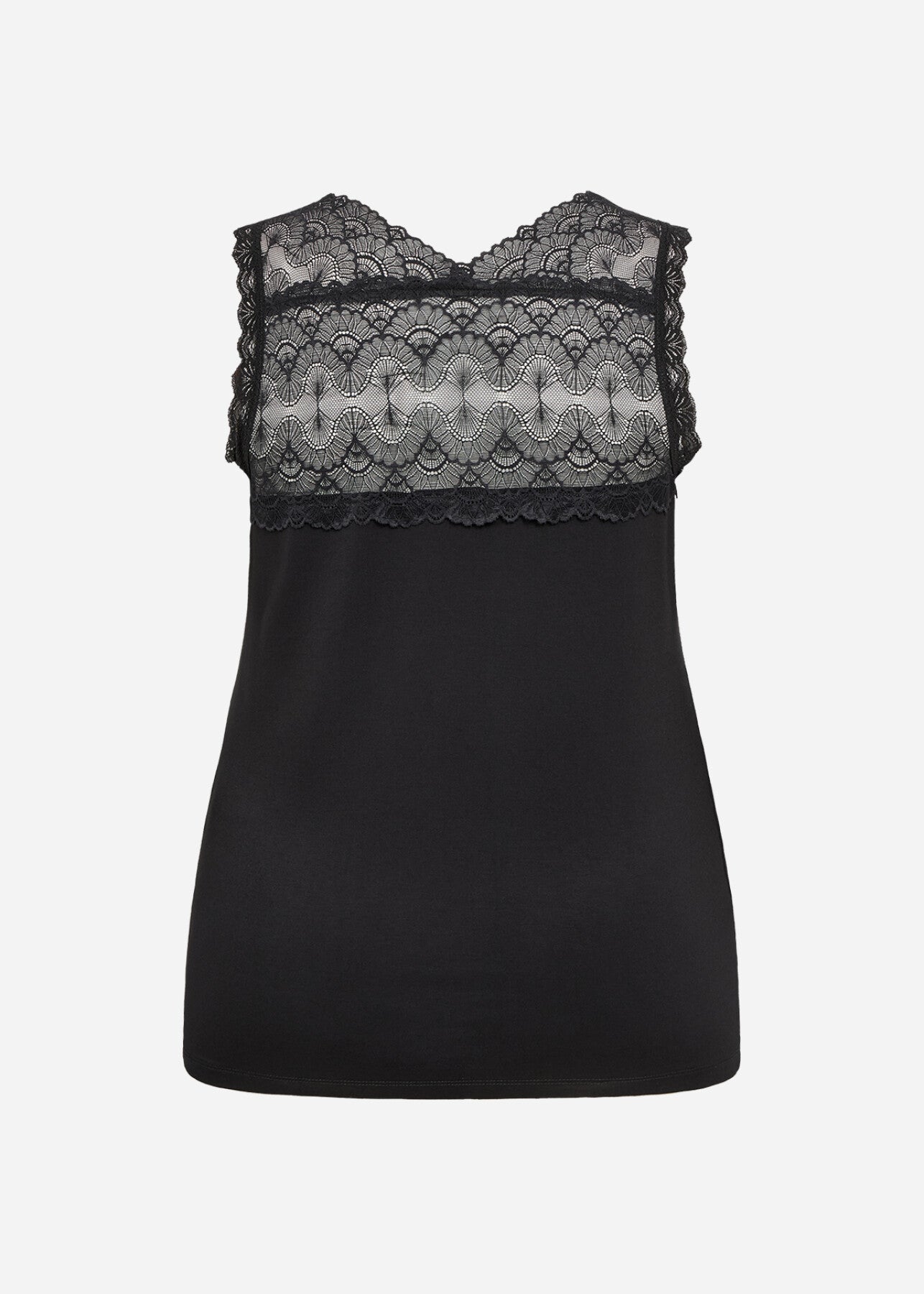 WA-STELLA 36 är en topp tillverkad av 93% Lyocell, 7% Elastan. Den har en elegant överdel i spets och en mjuk, bekväm passform. Denna unika design fungerar bra i lager med en kavaj eller tillsammans med dina favoritaccessoarer för olika looks.