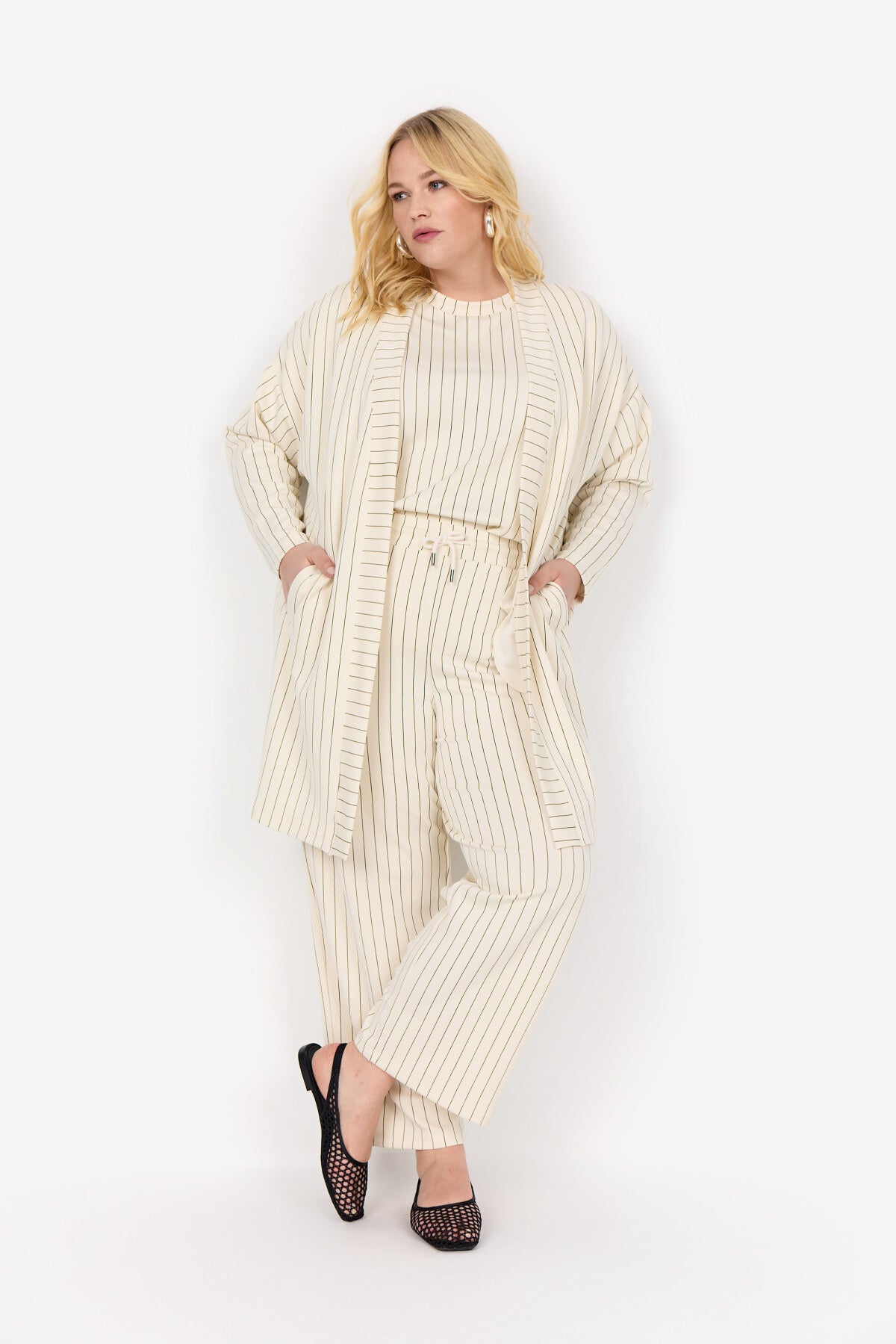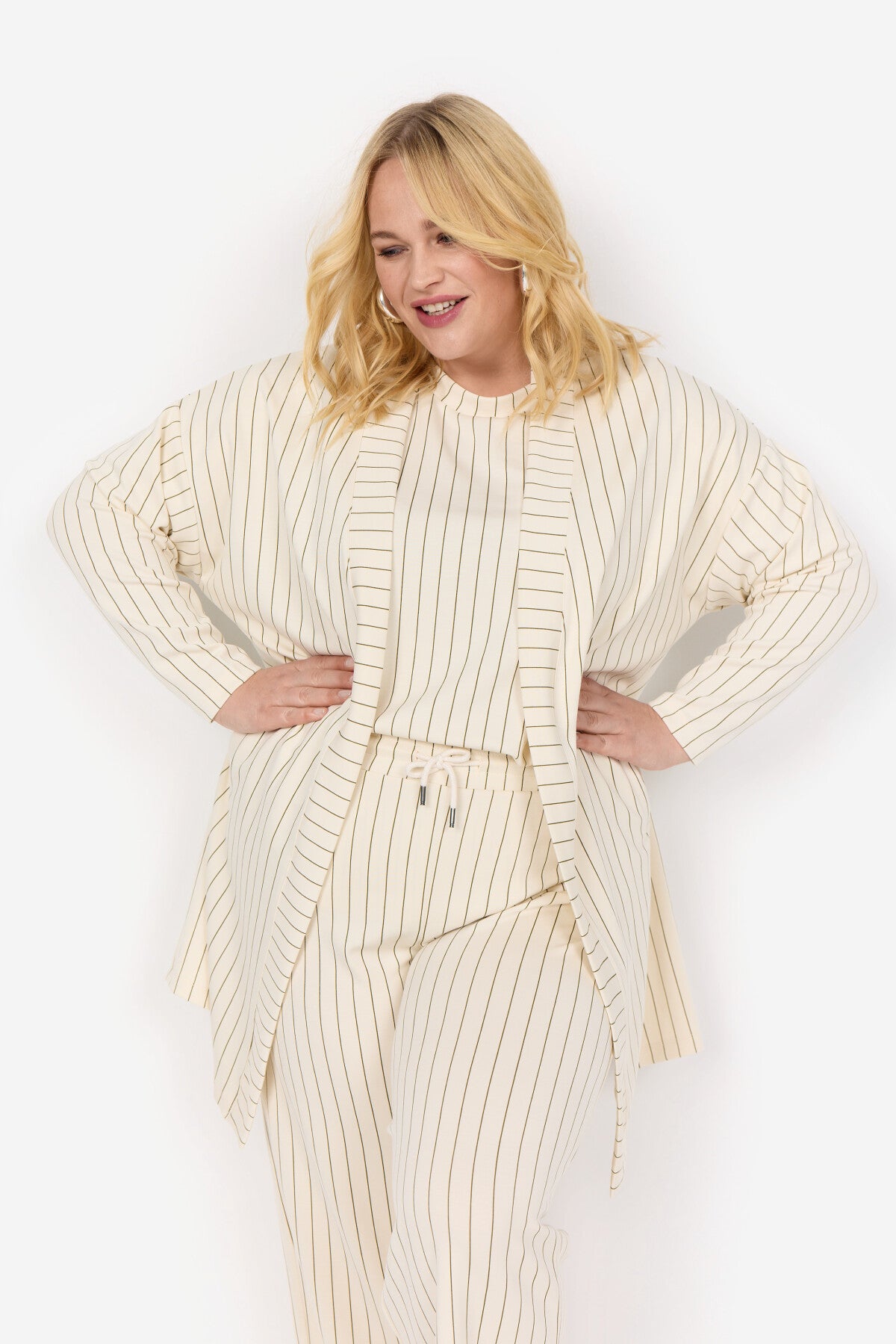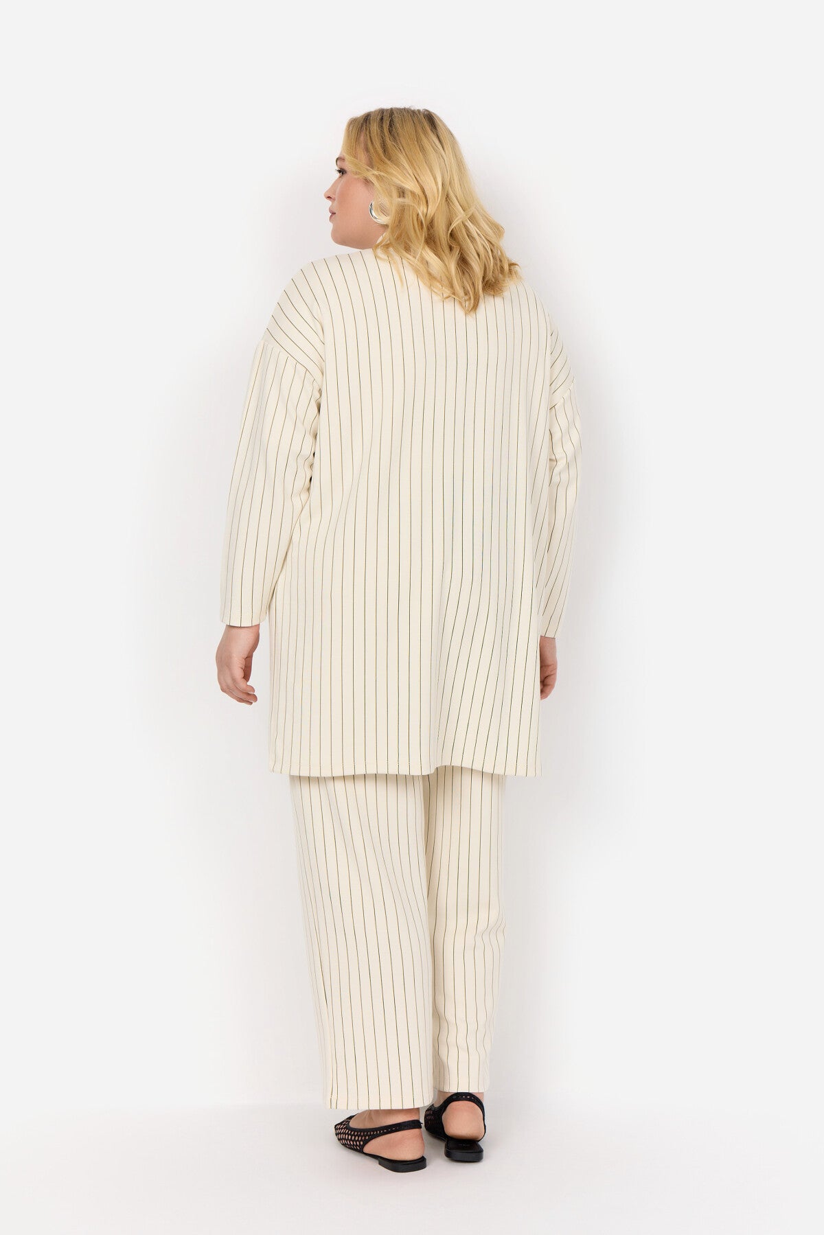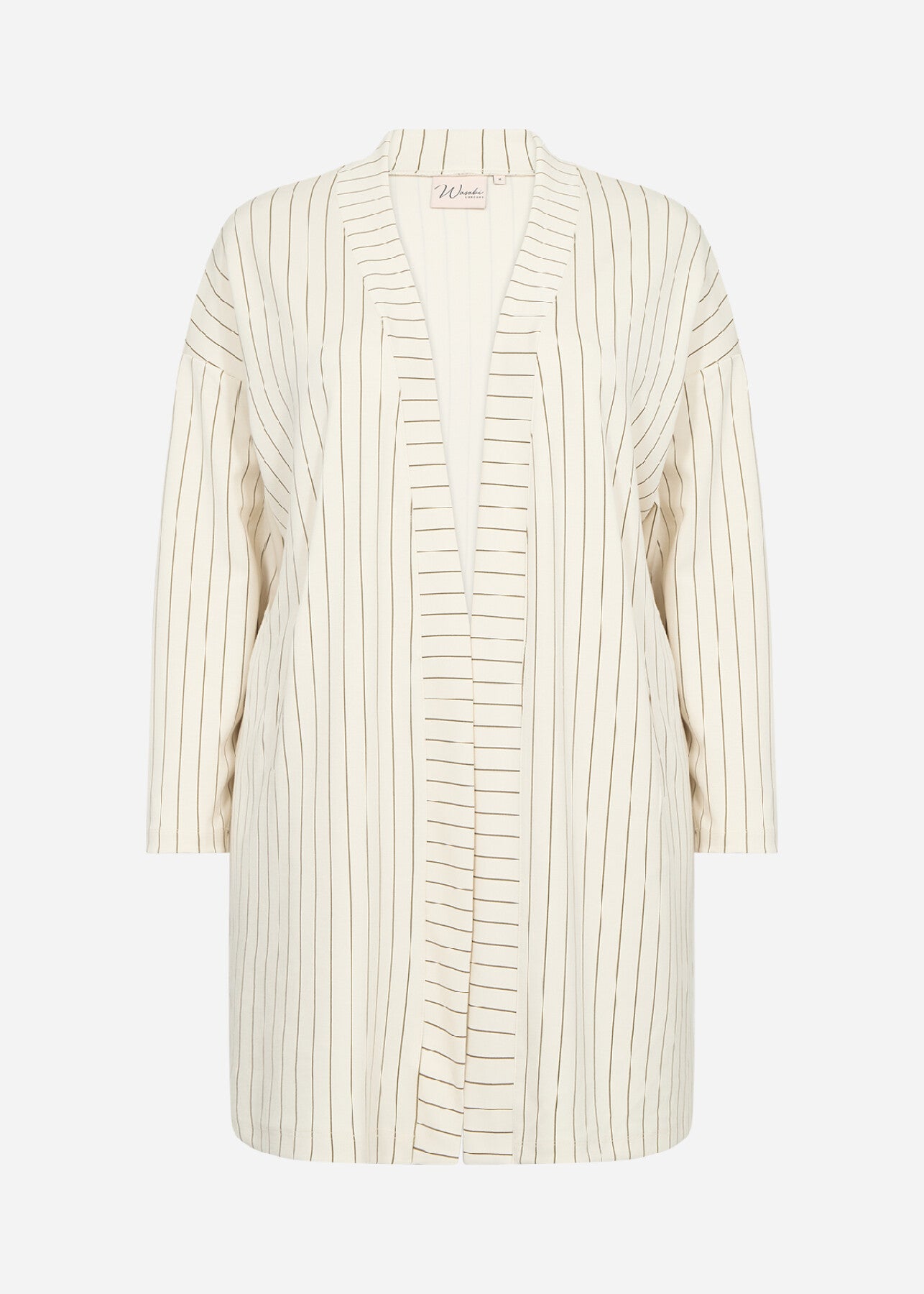 WA-LAENA 2 cardigan är tillverkad av 48% modal, 48% polyester och 4% elastan. Den har en öppen front med en sömlös krage och ett vertikalt randigt tryck. Kombinera den med skräddarsydda byxor eller jeans för en klassisk touch.