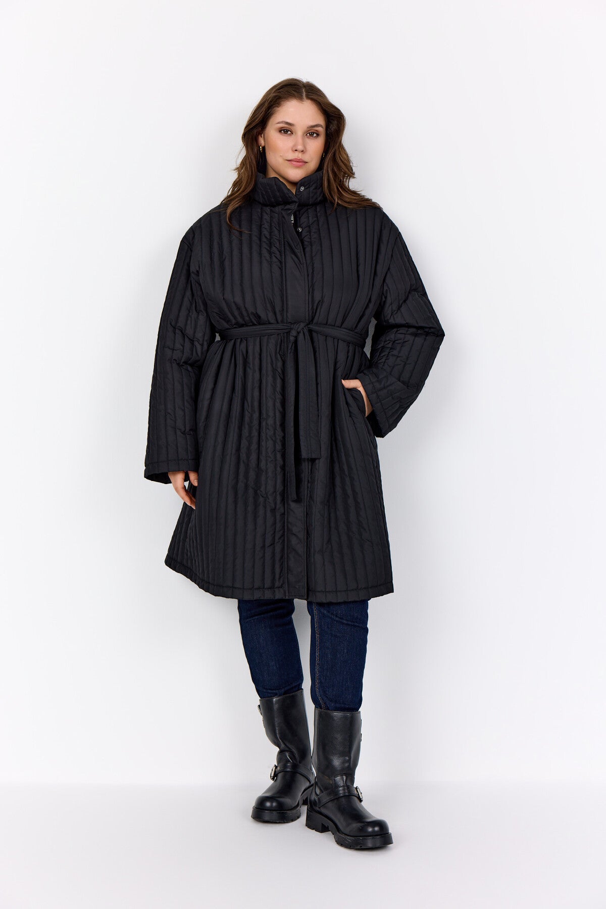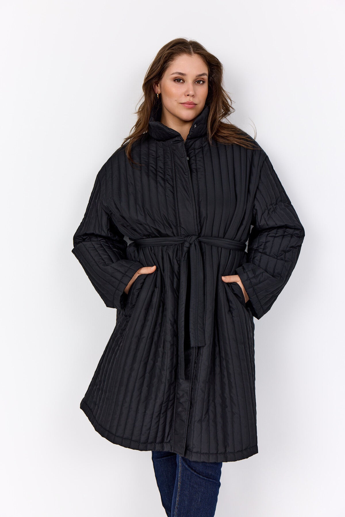 WA-LESLEY 4 Jacket har en distinkt design och är tillverkad av 100% polyester. Den har en hög krage, en dold knappslå, en medellång skärning, knytband i midjan och ett iögonfallande djurmönster. Kombinera den med neutrala toner för en balanserad look.