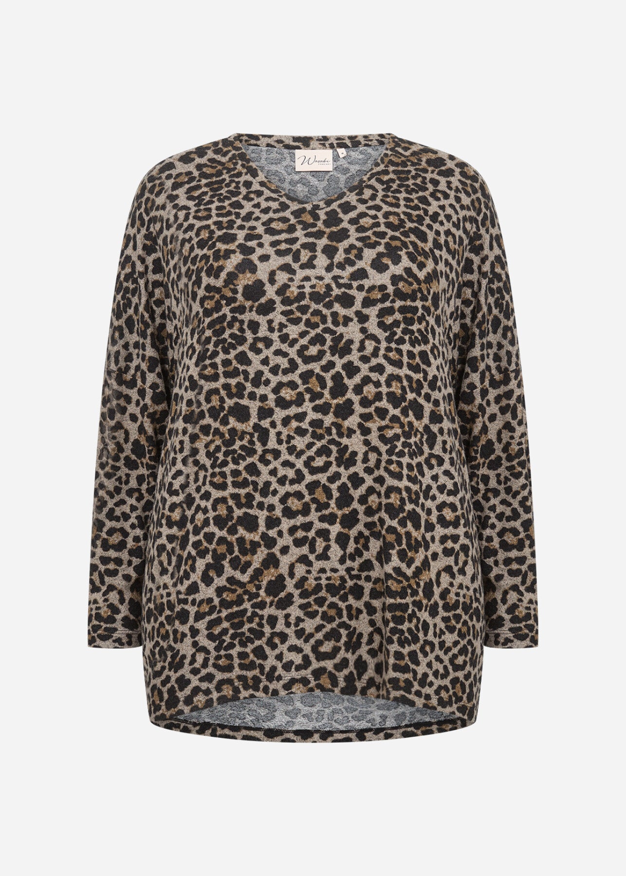 WA-LION 1 presenterar Blouse tillverkad av 74% LENZING™ ECOVERO™ viskos, 21% polyester och 5% elastan. Blusen har en diskret V-ringning, långa ärmar och ett leopardmönster. Kombinera den med svarta jeans eller en skräddarsydd kjol för en komplett look.