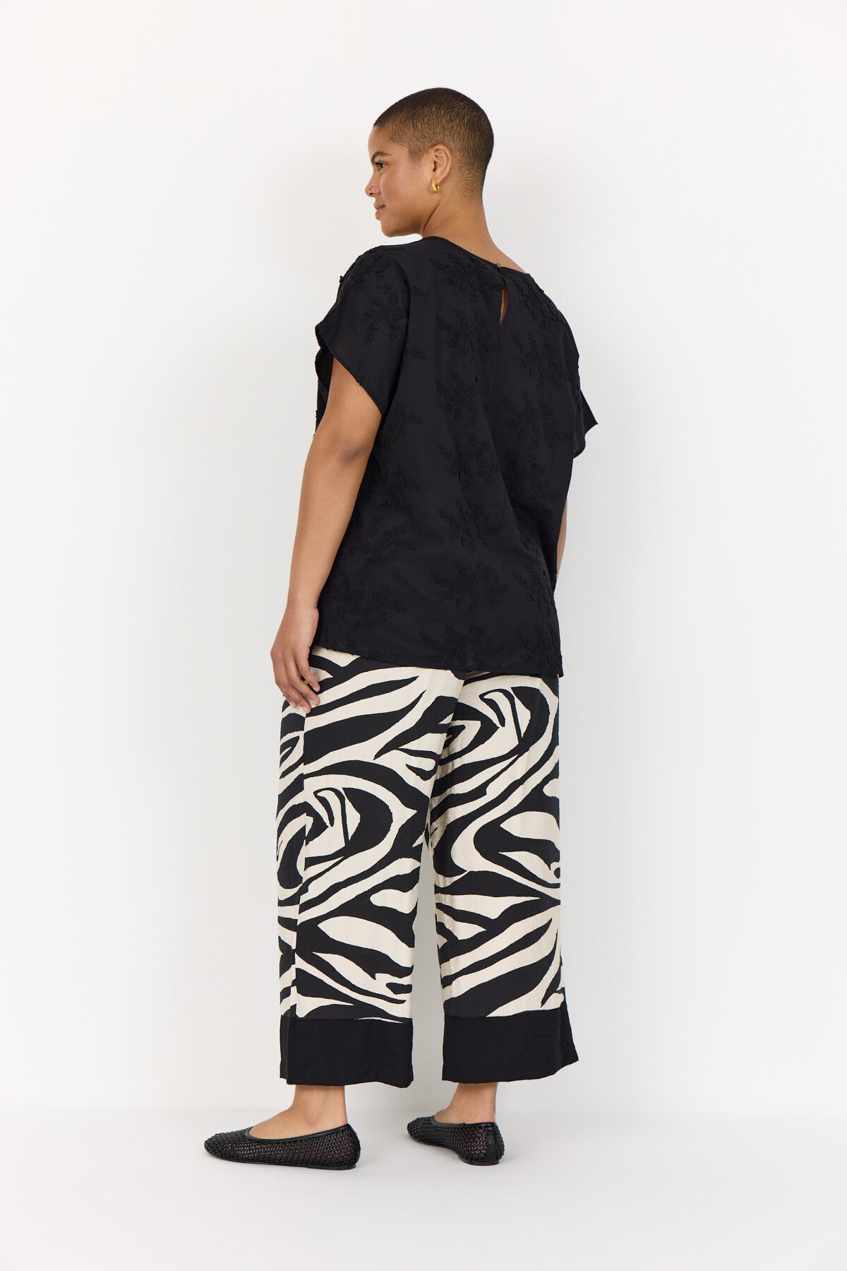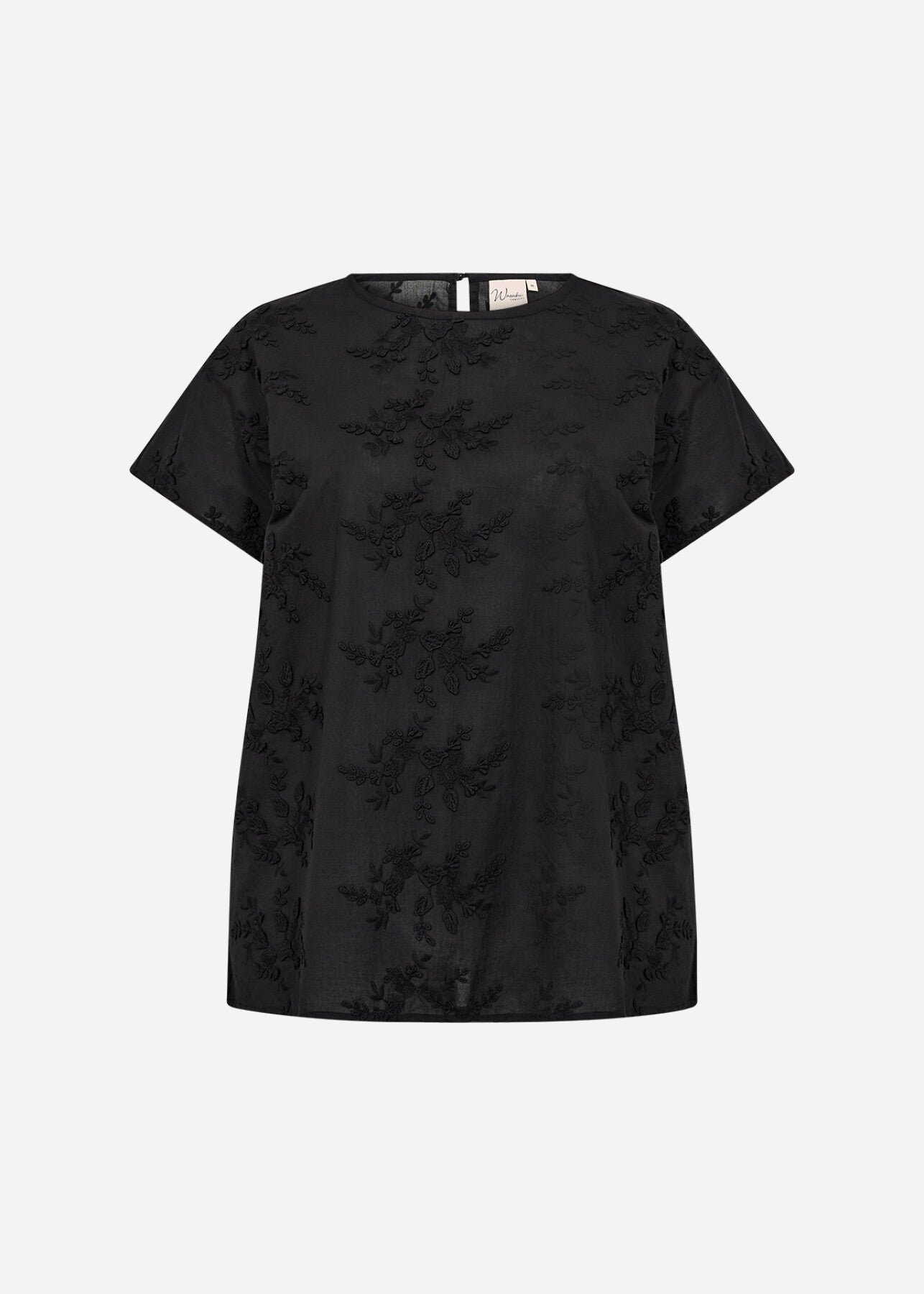 WA-LONIA 1 är en blus tillverkad av 100% ekologisk bomull. Blusen har ett fint blomsterbroderi, korta ärmar, en rund halsringning och en knappstängning baktill. Matcha den med jeans för en avslappnad look eller med en kjol för en mer komplett stil.