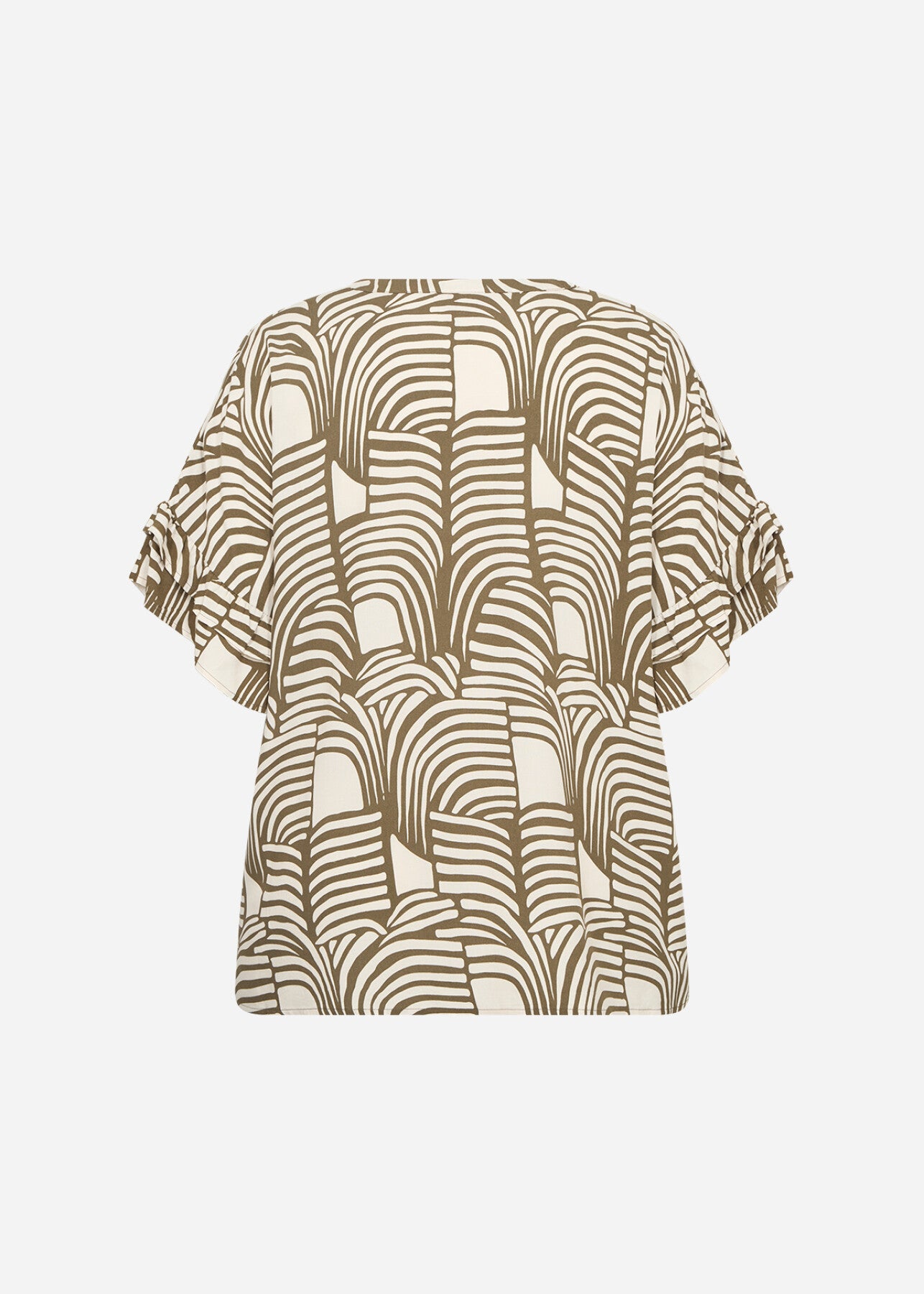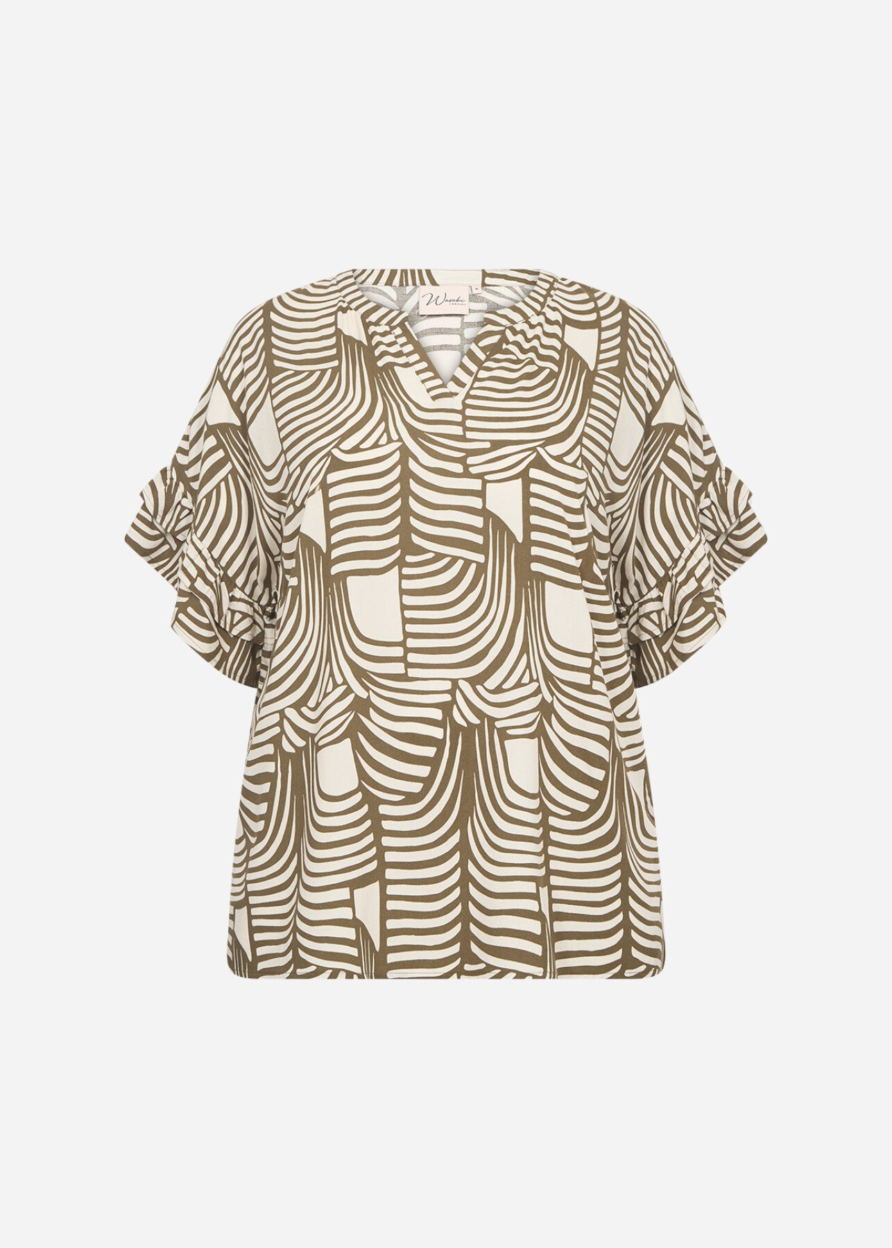 WA-LOVIS 1 introducerar en blus tillverkad av 100% LENZING™ ECOVERO™ viskos. Blusen har en V-ringad design, korta ärmar med volangdetaljer och ett modernt geometriskt tryck. Kombinera den med jeans för en avslappnad look eller med en kjol för mer formella tillfällen.