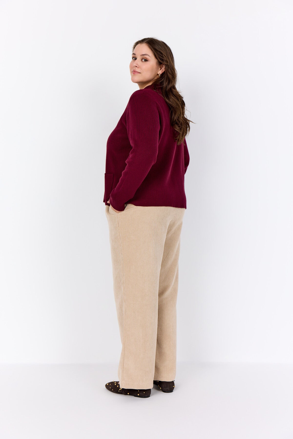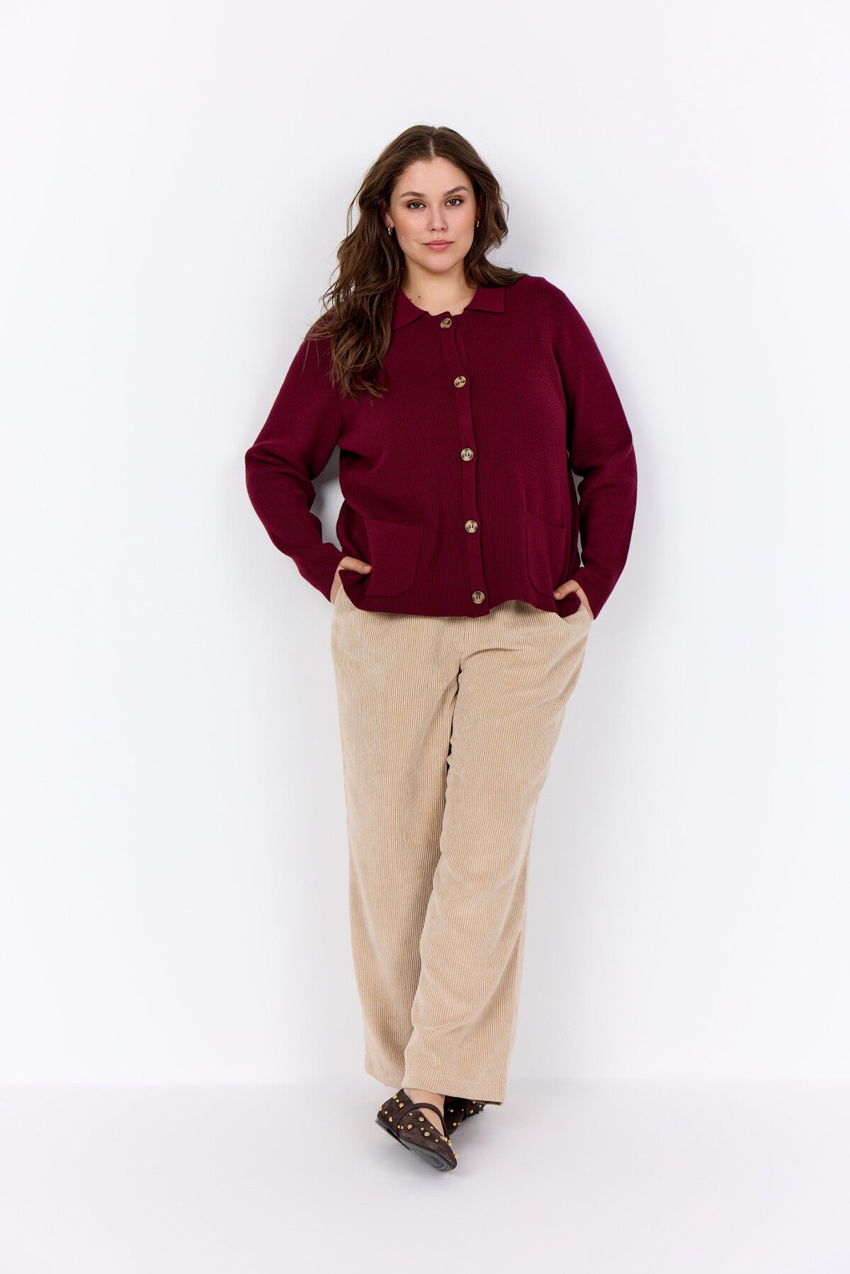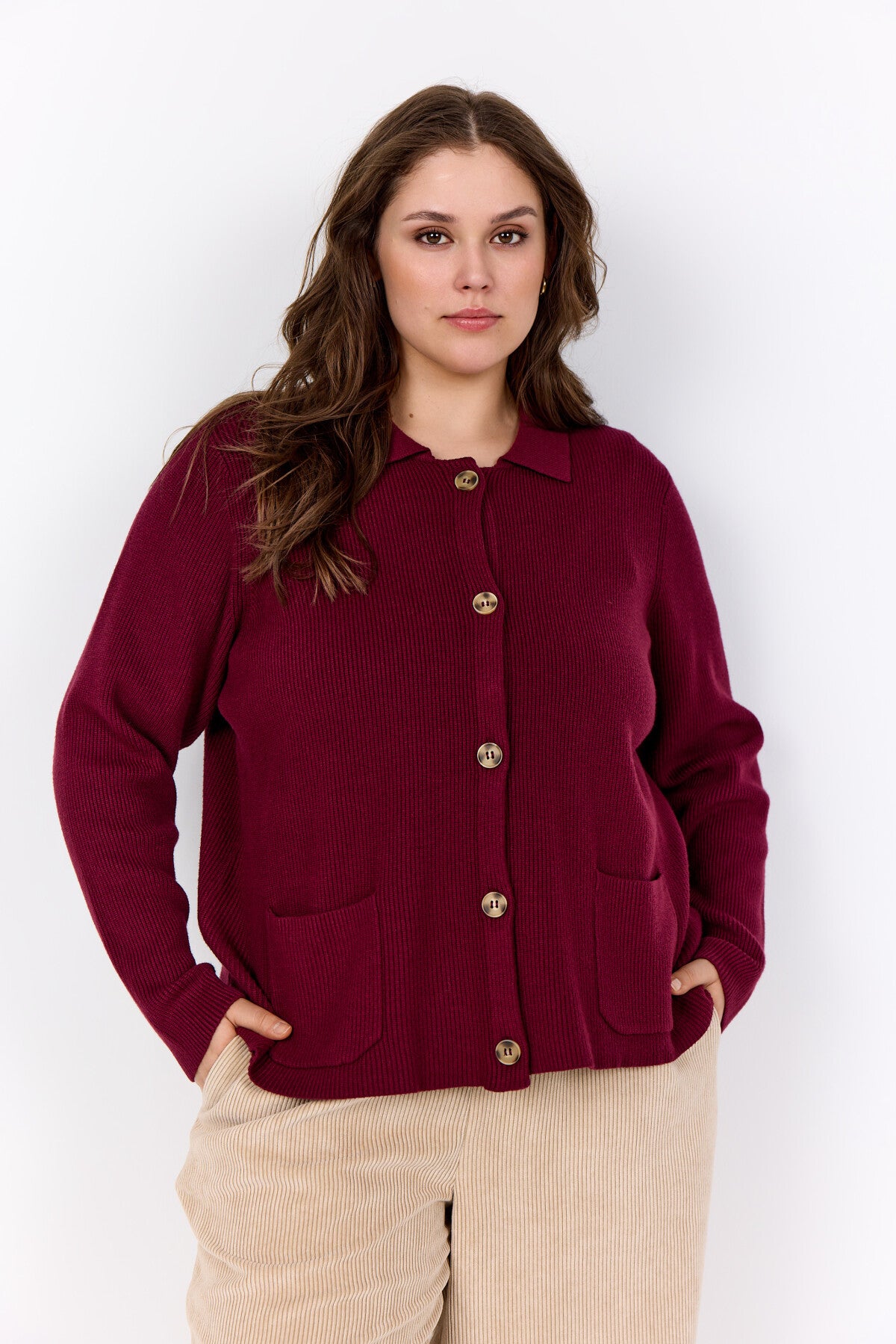 WA-NANINE 4 Cardigan är tillverkad i en blandning av 50% LENZING™ ECOVERO™ viskos, 27% polyester och 23% nylon. Denna cardigan har en klassisk krage, knappstängning framtill och två framfickor. Bär den över en enkel topp och jeans för en avslappnad look.