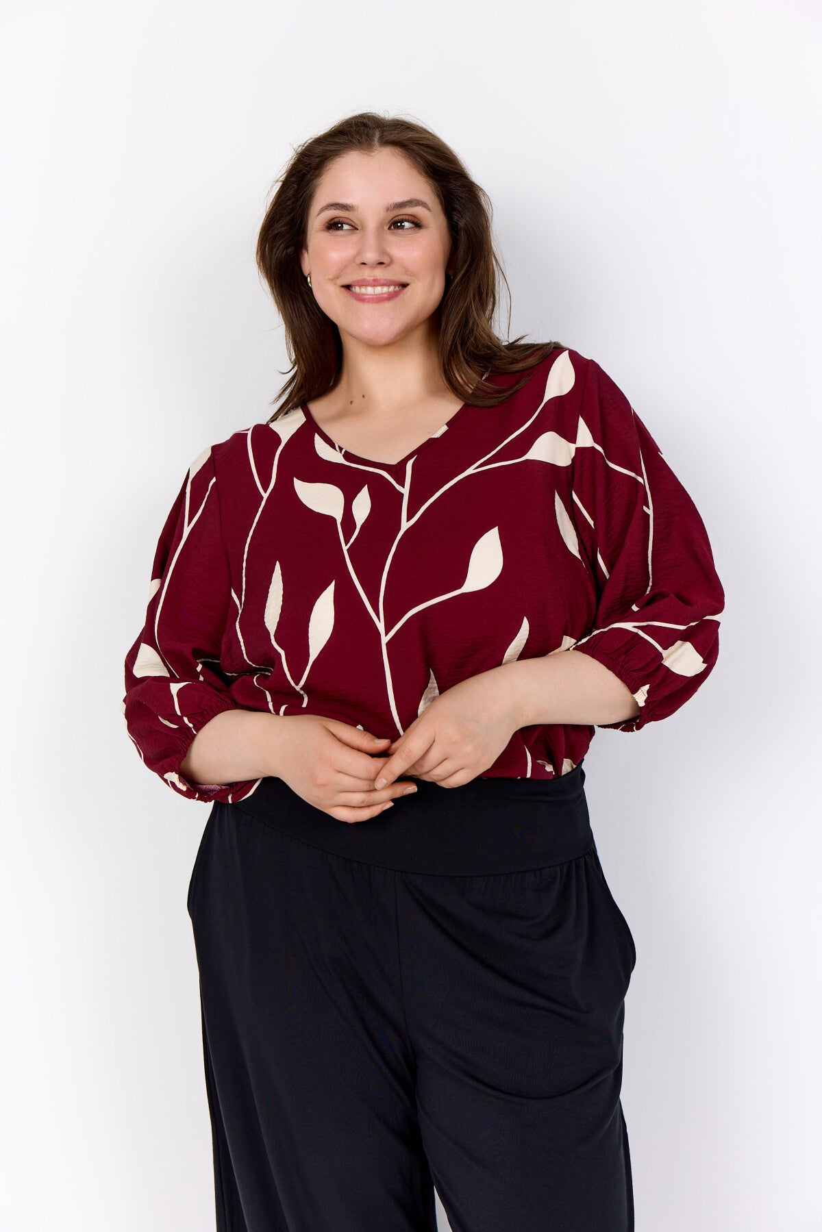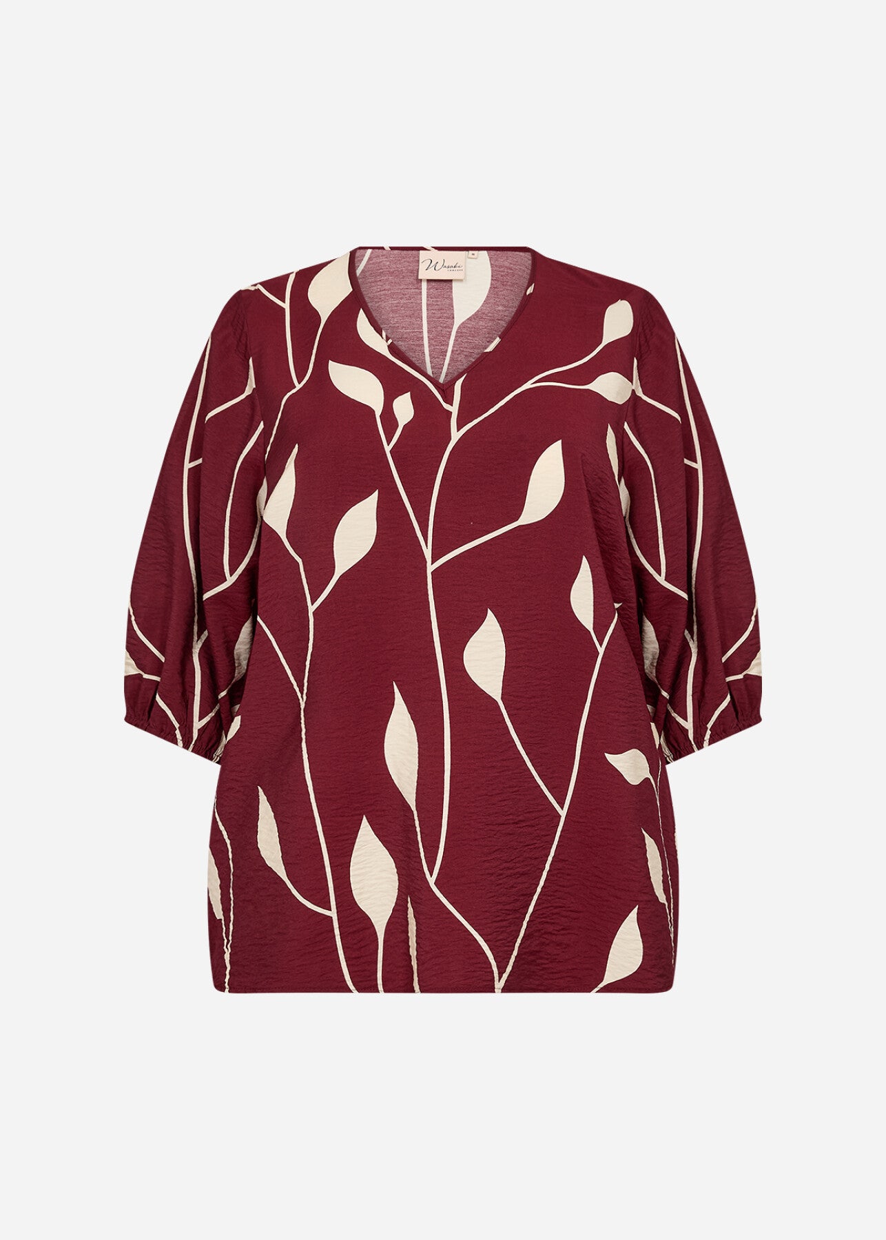 WA-NELLY 1 är en blus tillverkad av 82% viskos och 18% polyamid. Den har en V-ringning med 3/4-långa ärmar och ett djärvt bladtryck. Matcha med dina favoritjeans eller kjol.