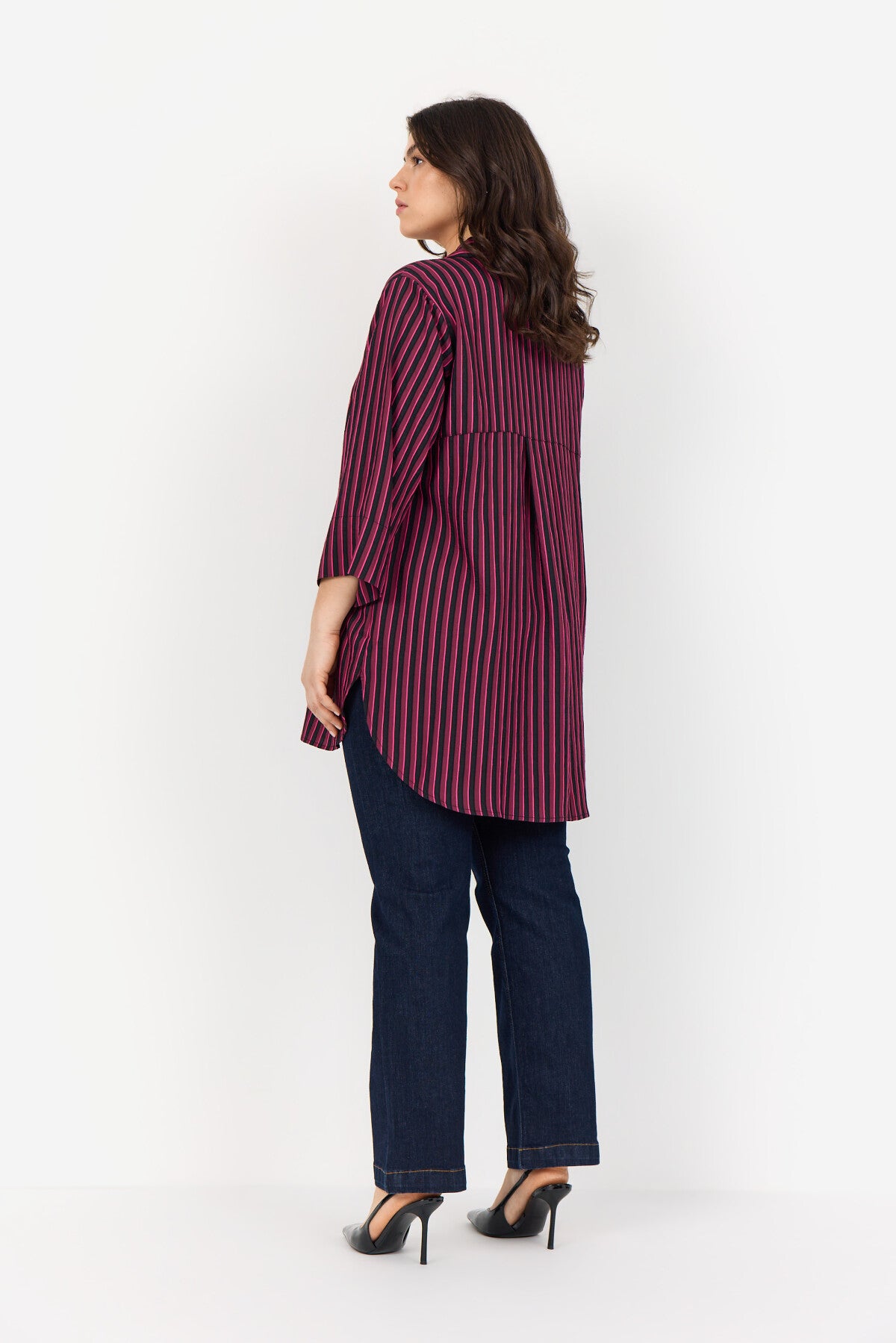 WA-NICHOLE 2 Shirt består av 87% LENZING™ ECOVERO™ viskos, 13% polyamid. Skjortan har en subtil krage, knappstängning framtill och ett slående randigt mönster med en något förlängd längd. Kombinera den med skräddarsydda byxor för en snygg look eller med avslappnade jeans för en lättsam stil.