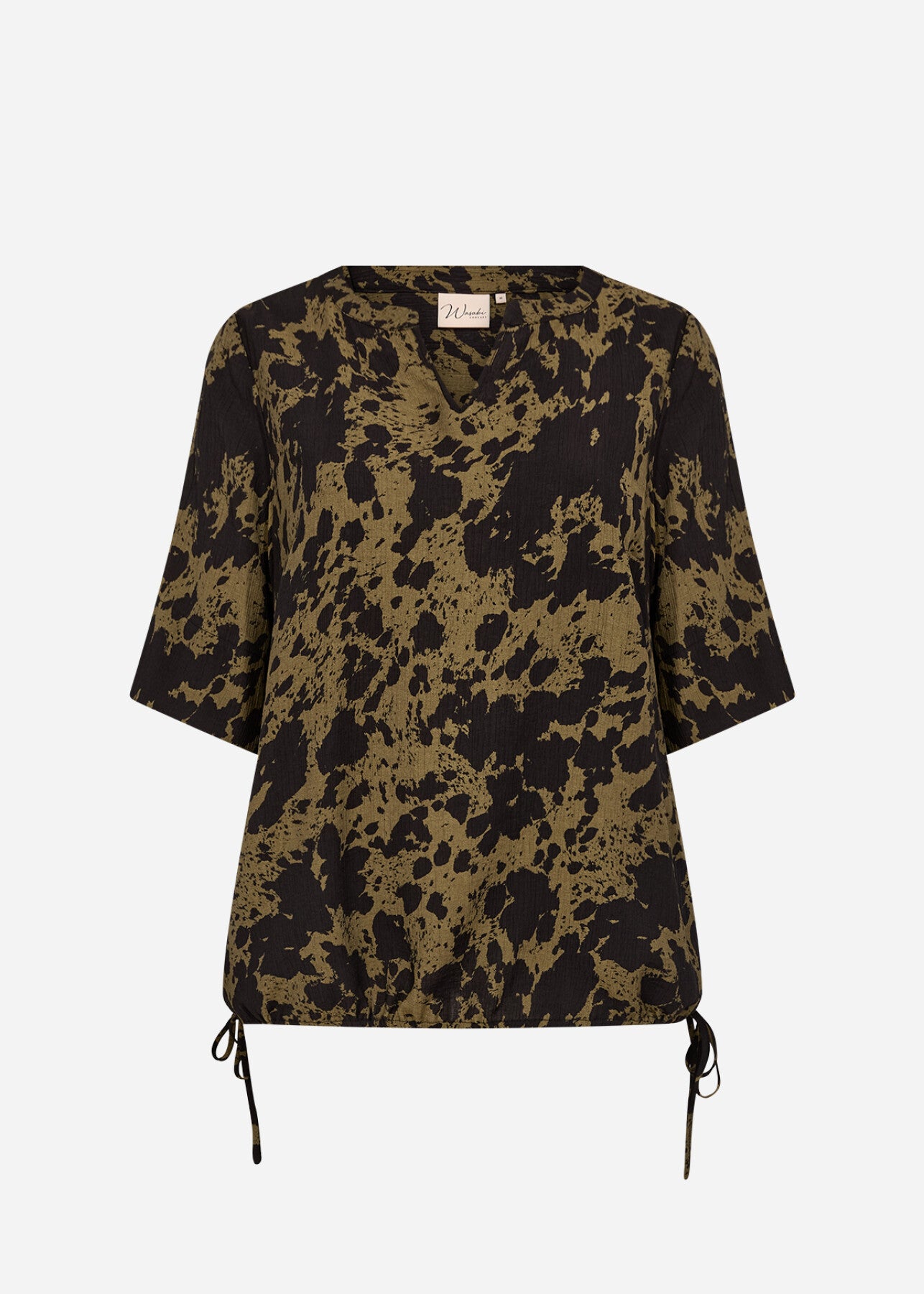 WA-NIKITA 1 Blouse är tillverkad av 85% LENZING™ ECOVERO™ viskos, 15% nylon. Den har en avslappnad passform med V-ringning och ett konstnärligt abstrakt tryck, samt justerbara dragskor i nederkanten. Kombinera den med skräddarsydda byxor eller avslappnade jeans för olika tillfällen.