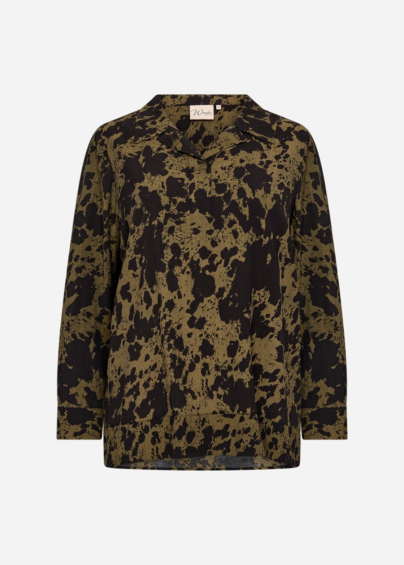 WA-NIKITA 2 Blouse är tillverkad av 85% LENZING™ ECOVERO™ viskos, 15% nylon. Den har en klassisk krage, en knappslå framtill och ett djärvt abstrakt tryck. Kombinera den med neutrala byxor eller kjolar för en balanserad look.