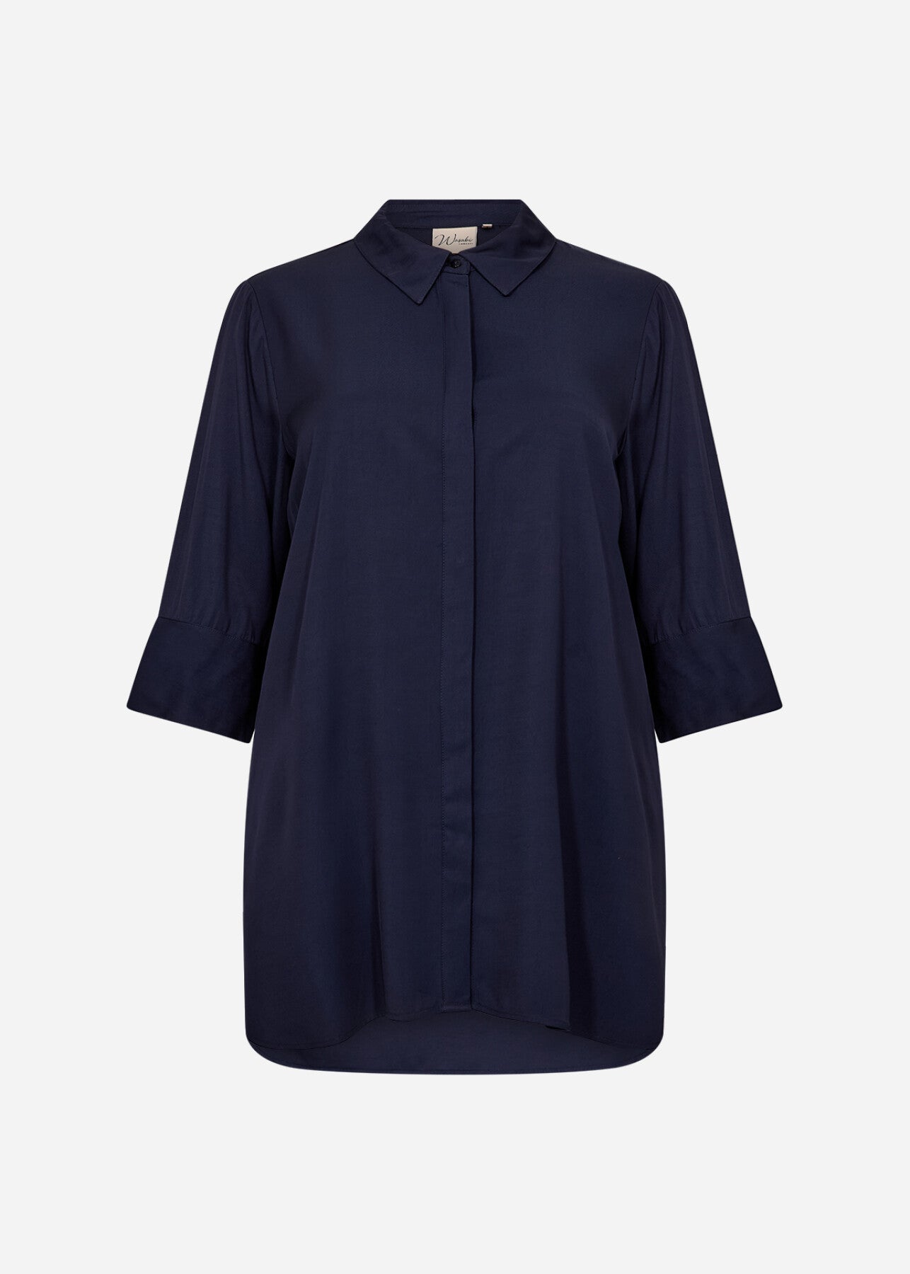 WA-NOVA 5 skjorta är tillverkad i 100% viskos. Den har en klassisk krage, dolda knappar och en elegant lång längd. Kombinera den med skräddarsydda byxor för en professionell look eller med jeans för en mer avslappnad outfit.