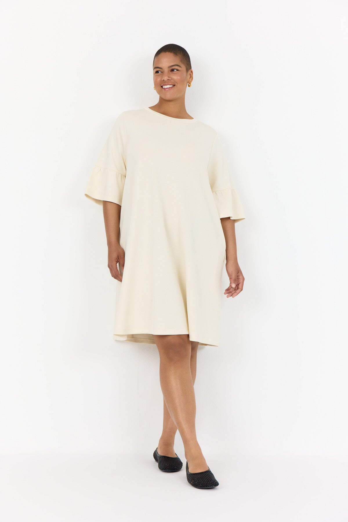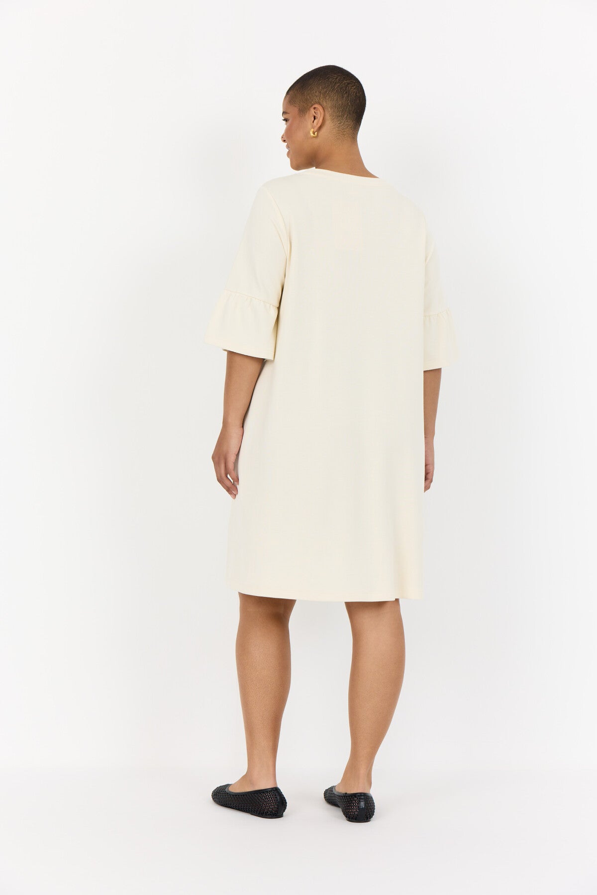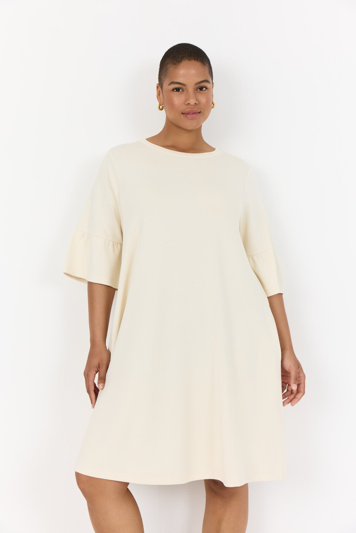 WA-SABINA 56 Dress är tillverkad av 48% modal, 48% polyester och 4% elastan. Klänningen har utsvängda korta ärmar och en smickrande knälång design. Kombinera den med ankelstövlar eller avslappnade sneakers för en snygg look.