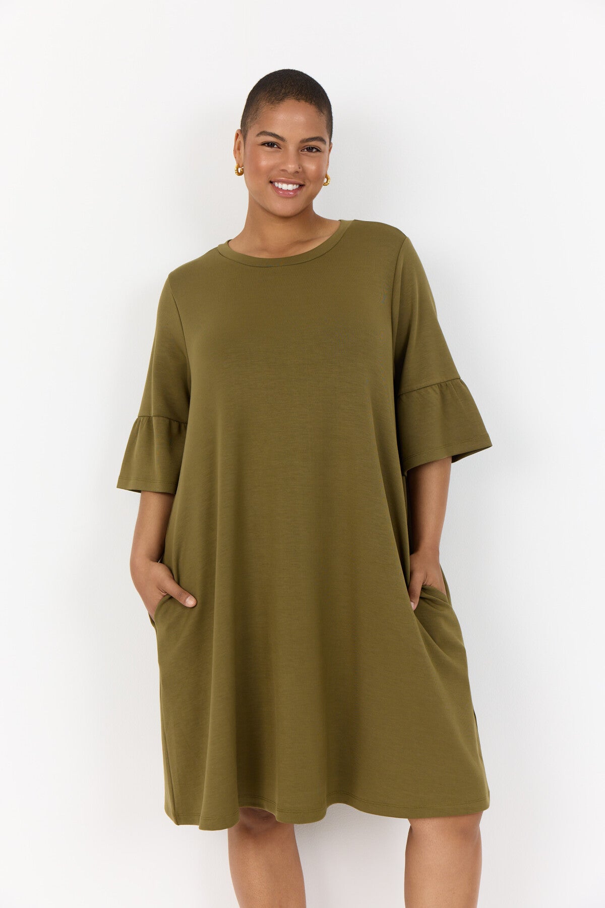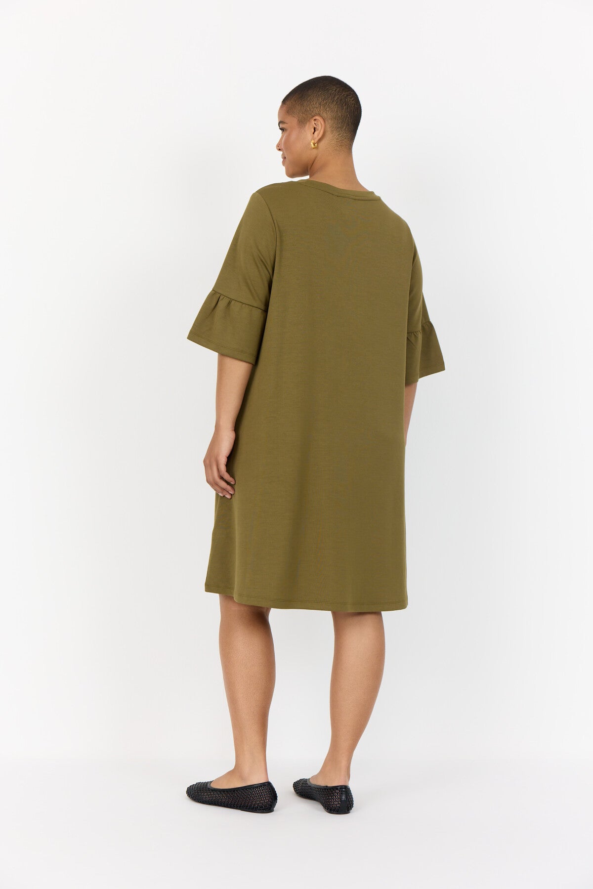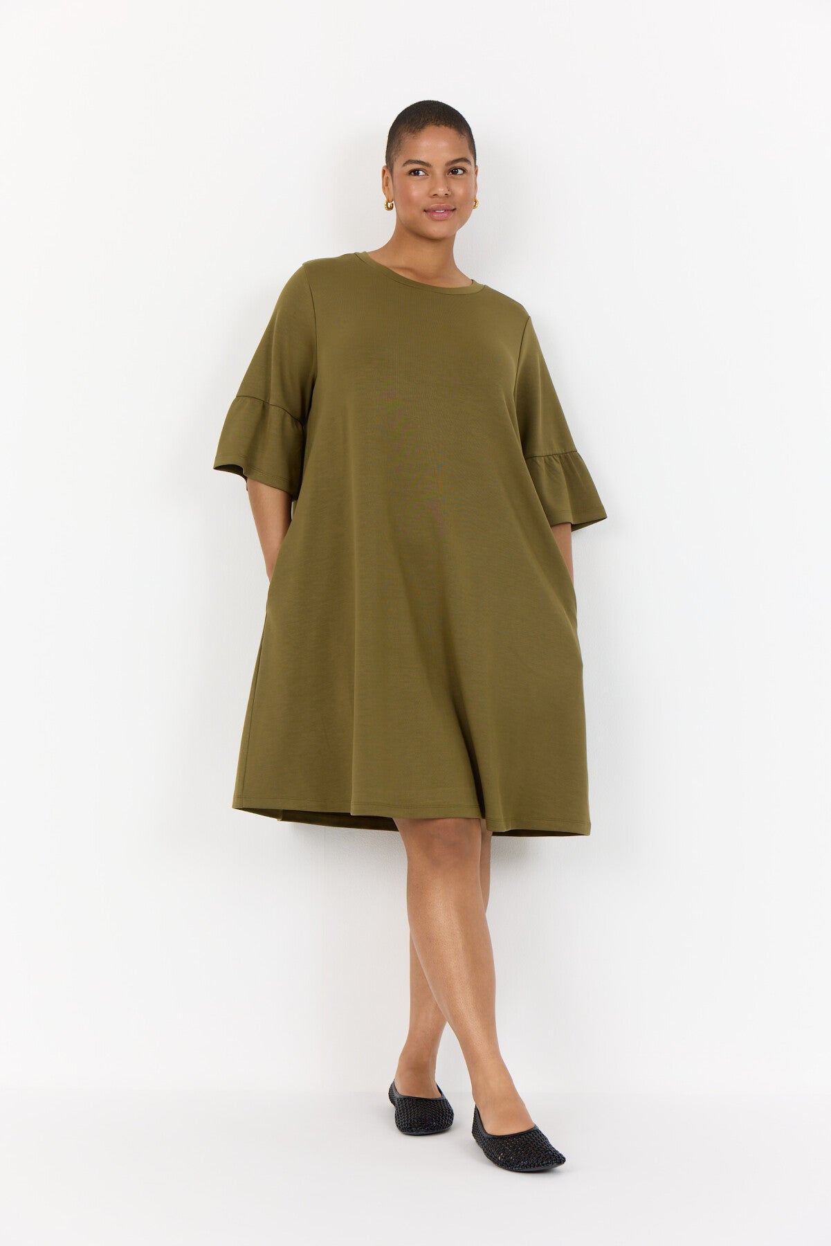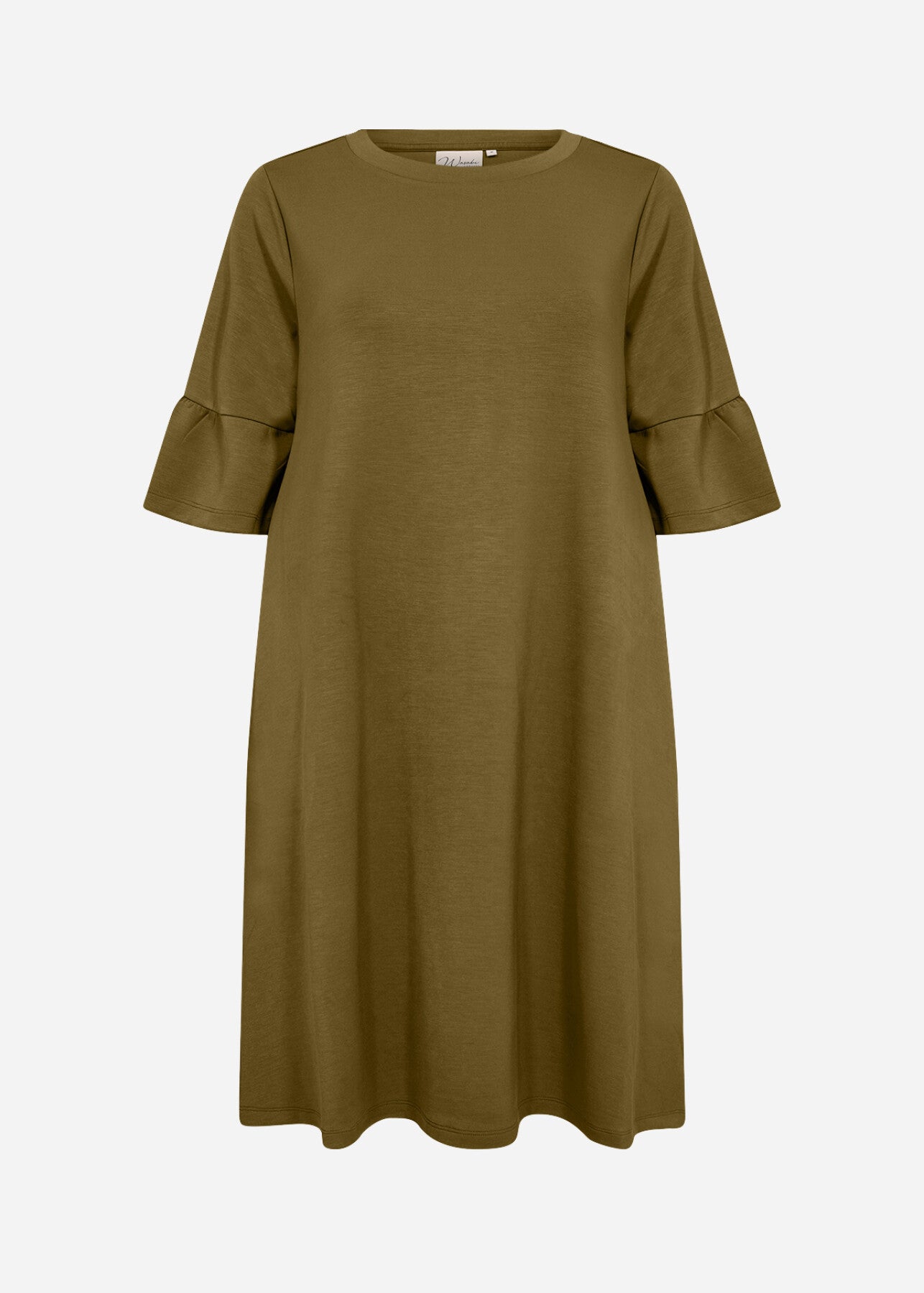 WA-SABINA 56 Dress är tillverkad av 48% modal, 48% polyester och 4% elastan. Klänningen har utsvängda korta ärmar och en smickrande knälång design. Kombinera den med ankelstövlar eller avslappnade sneakers för en snygg look.