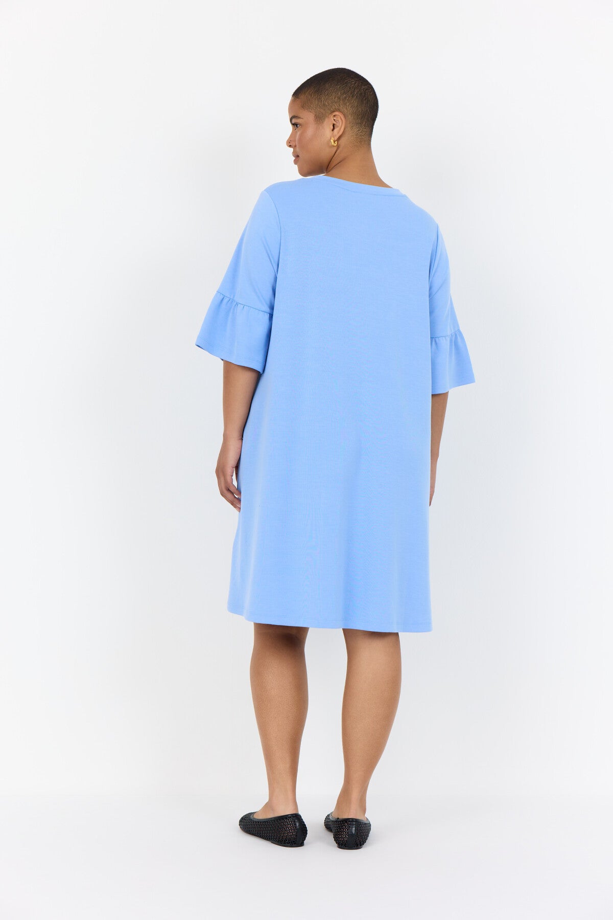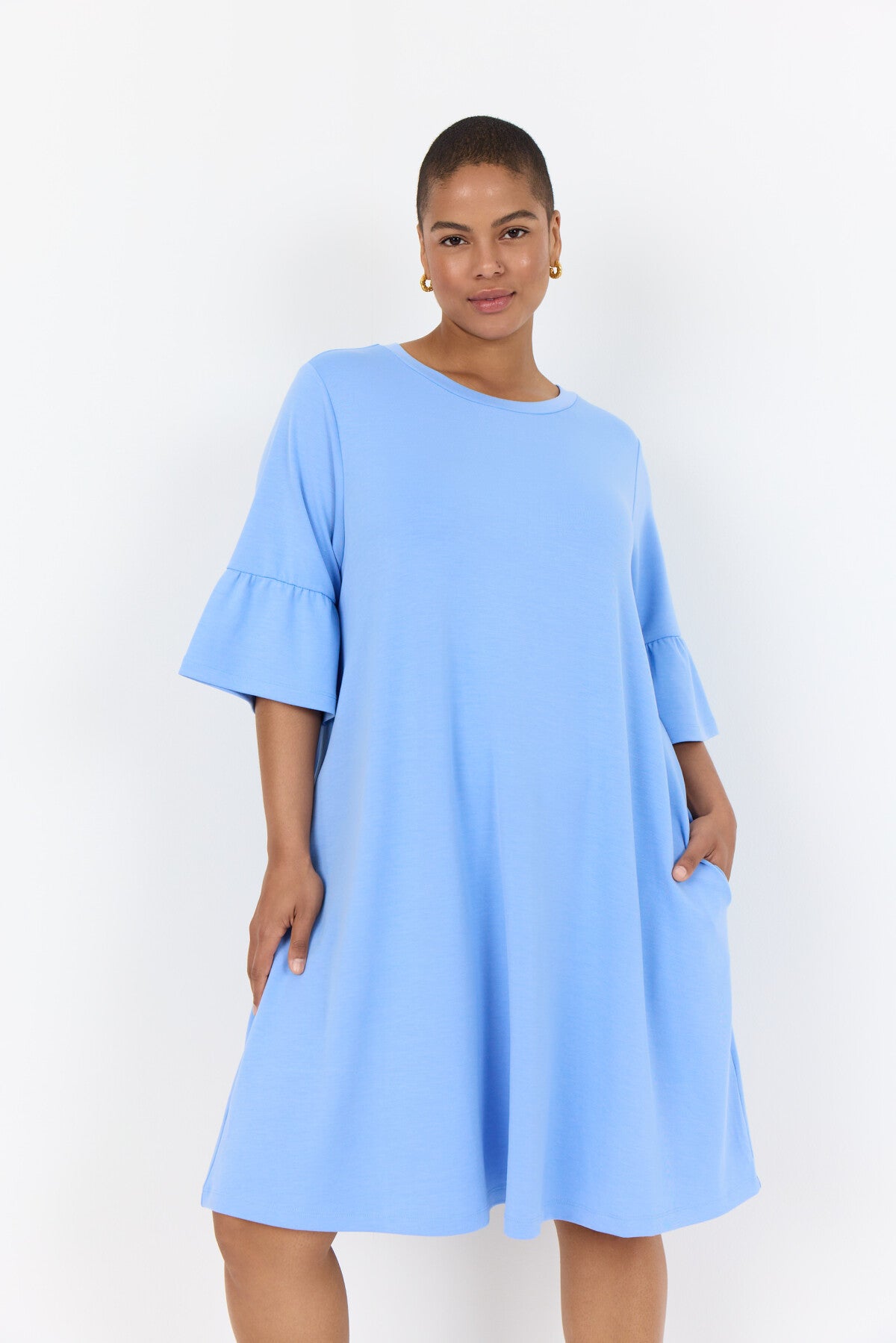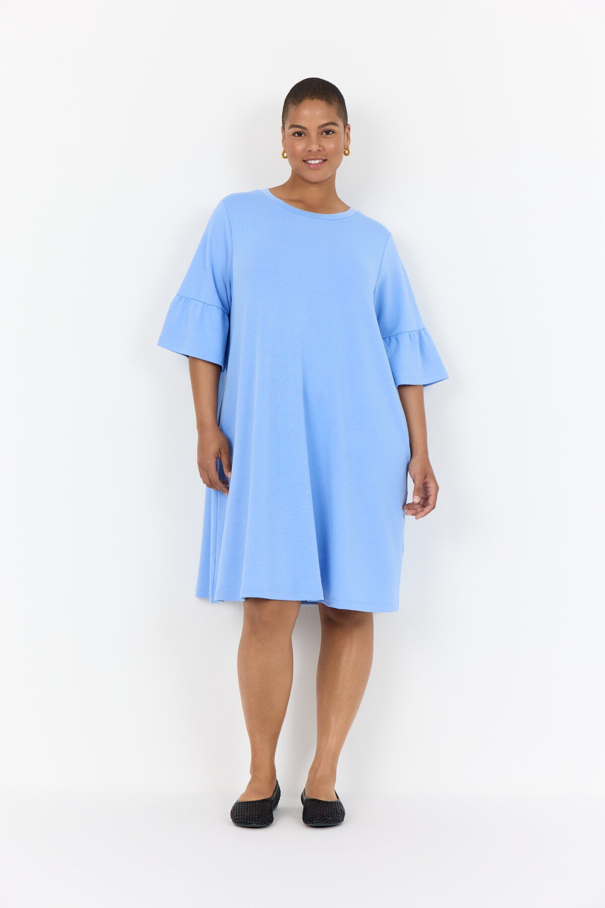 WA-SABINA 56 Dress är tillverkad av 48% modal, 48% polyester och 4% elastan. Klänningen har utsvängda korta ärmar och en smickrande knälång design. Kombinera den med ankelstövlar eller avslappnade sneakers för en snygg look.