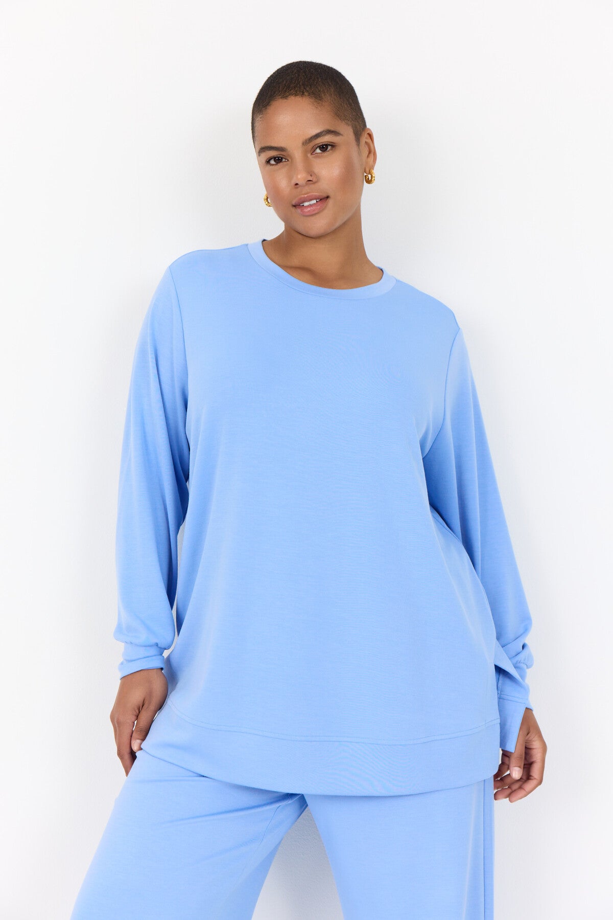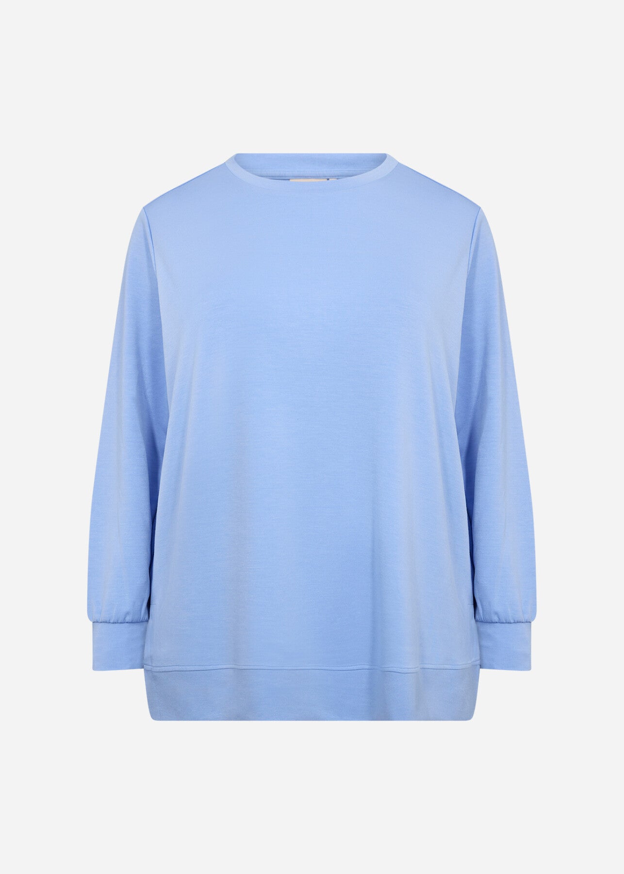 WA-SABINA 53 är en sweatshirt tillverkad av 48% modal, 48% polyester, 4% elastan. Den har en rund halsringning, sidoslitsar, långa ärmar och en avslappnad passform. Kombinera den med jeans eller leggings för en bekväm look.