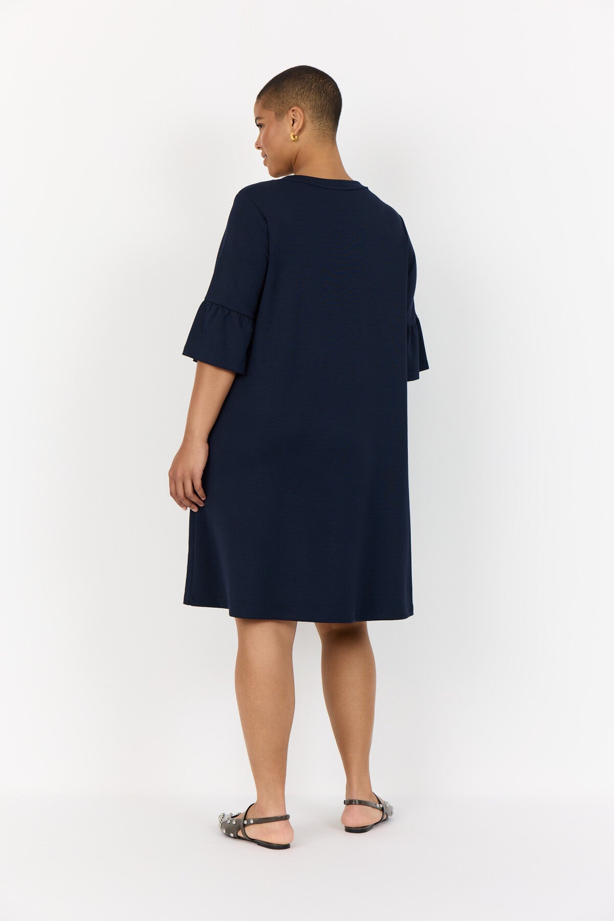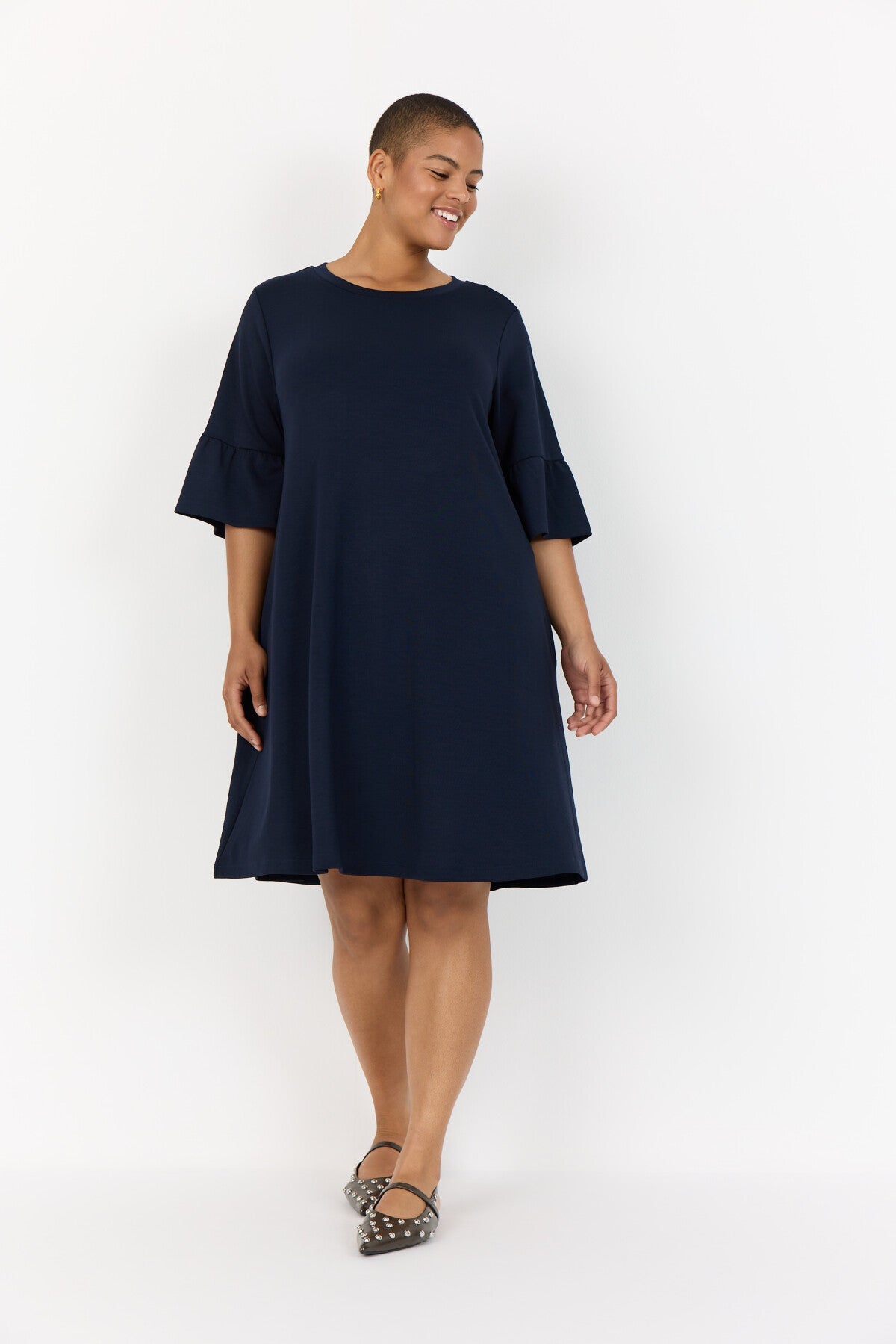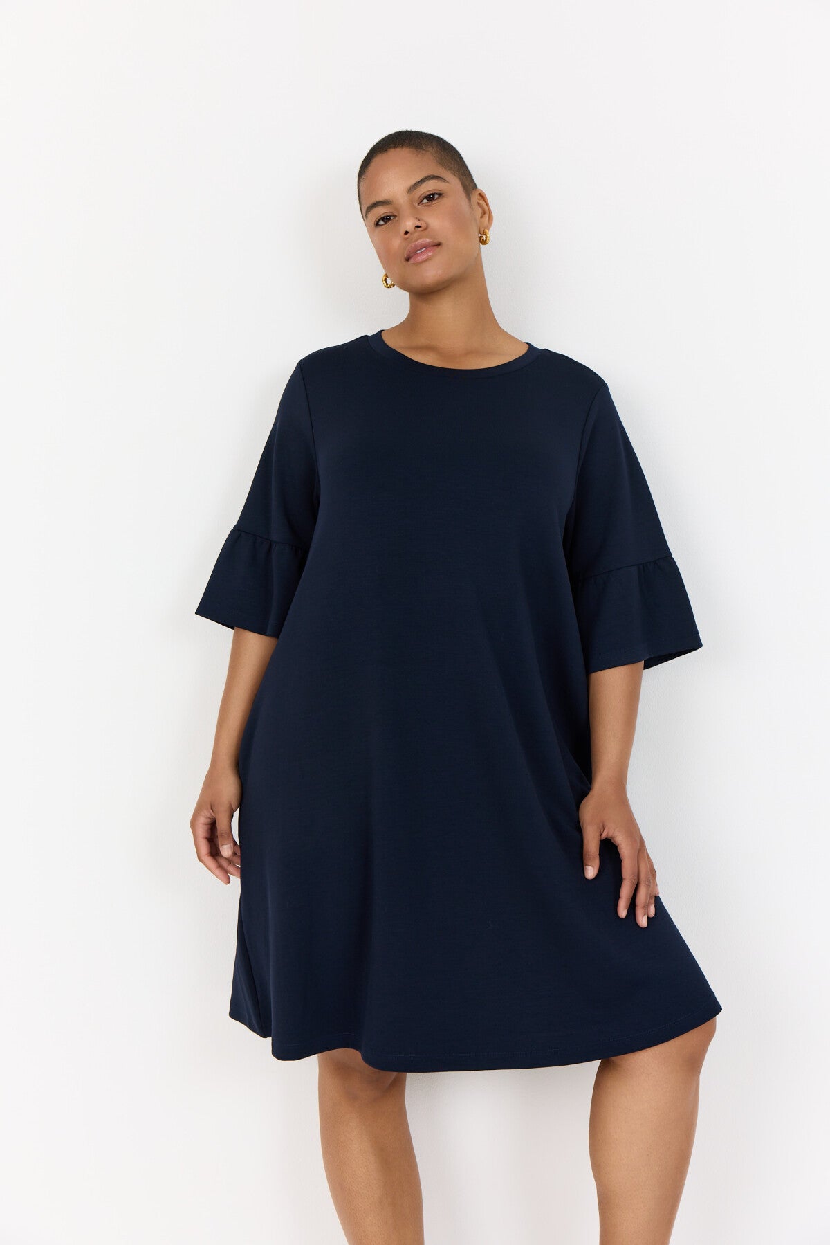 WA-SABINA 56 Dress är tillverkad av 48% modal, 48% polyester och 4% elastan. Klänningen har utsvängda korta ärmar och en smickrande knälång design. Kombinera den med ankelstövlar eller avslappnade sneakers för en snygg look.