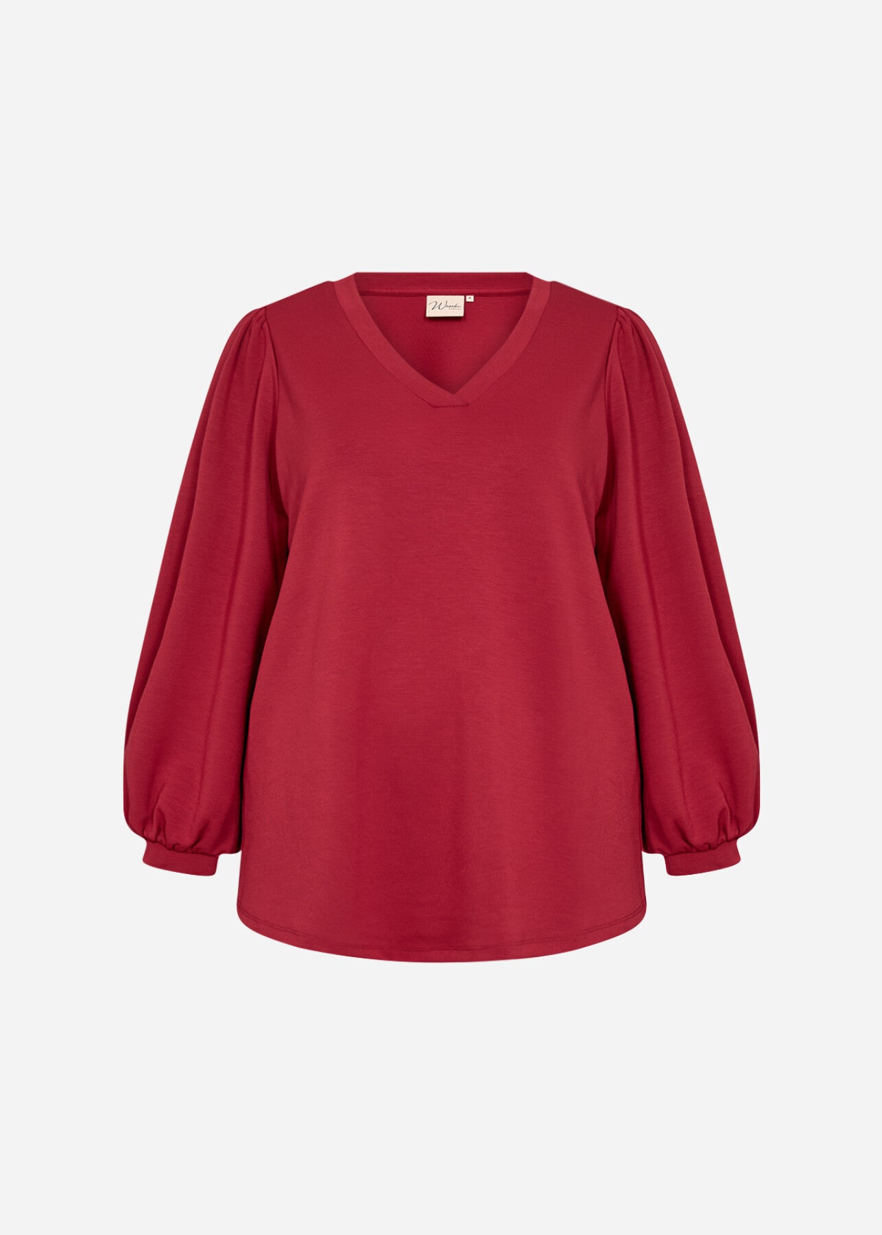 WA-SABINA 58 är en blus tillverkad av 48% modal, 48% polyester och 4% elastan. Den har en V-ringad halsringning med rynkade långa ärmar och elastiska manschetter. Matcha den med skräddarsydda byxor eller en elegant kjol för en snygg look.