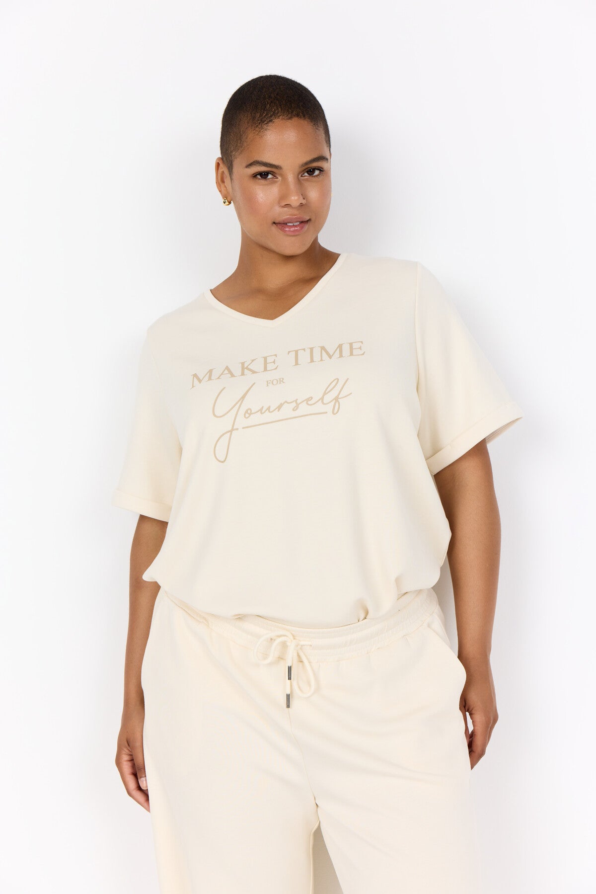 WA-SABINA 57 är en blus tillverkad av 48% modal, 48% polyester och 4% elastan. Blusen har V-ringad hals, korta ärmar med rullade muddar och ett inspirerande text-tryck på framsidan. Matcha den med jeans eller lediga byxor för en avslappnad look.
