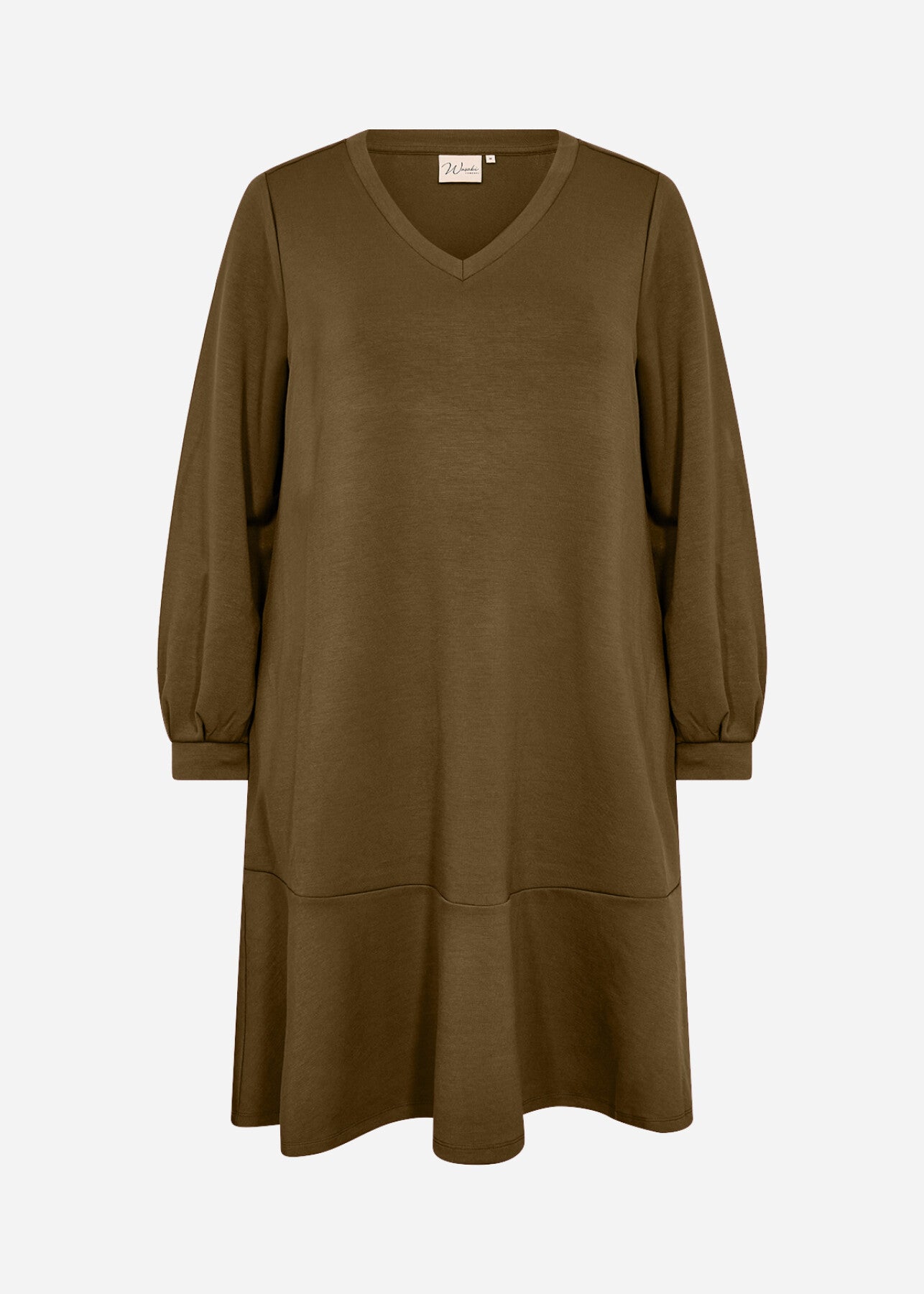 WA-SABINA 62 Dress är tillverkad av 48% modal, 48% polyester och 4% elastan. Den har en V-ringning, långa ärmar och en flytande silhuett. Kombinera den med dina favoritsneakers för en avslappnad look eller klä upp den med klackar.