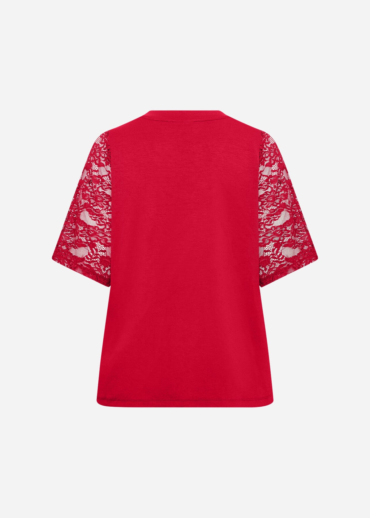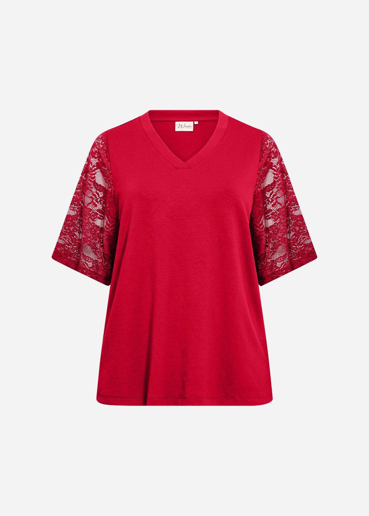 WA-SABINA 65 T-shirt är tillverkad av 48% modal, 48% polyester och 4% elastan. Den har eleganta spetsärmar och en smickrande V-ringning. Matcha den med dina favoritjeans eller en snygg kjol för en cool och unik look.