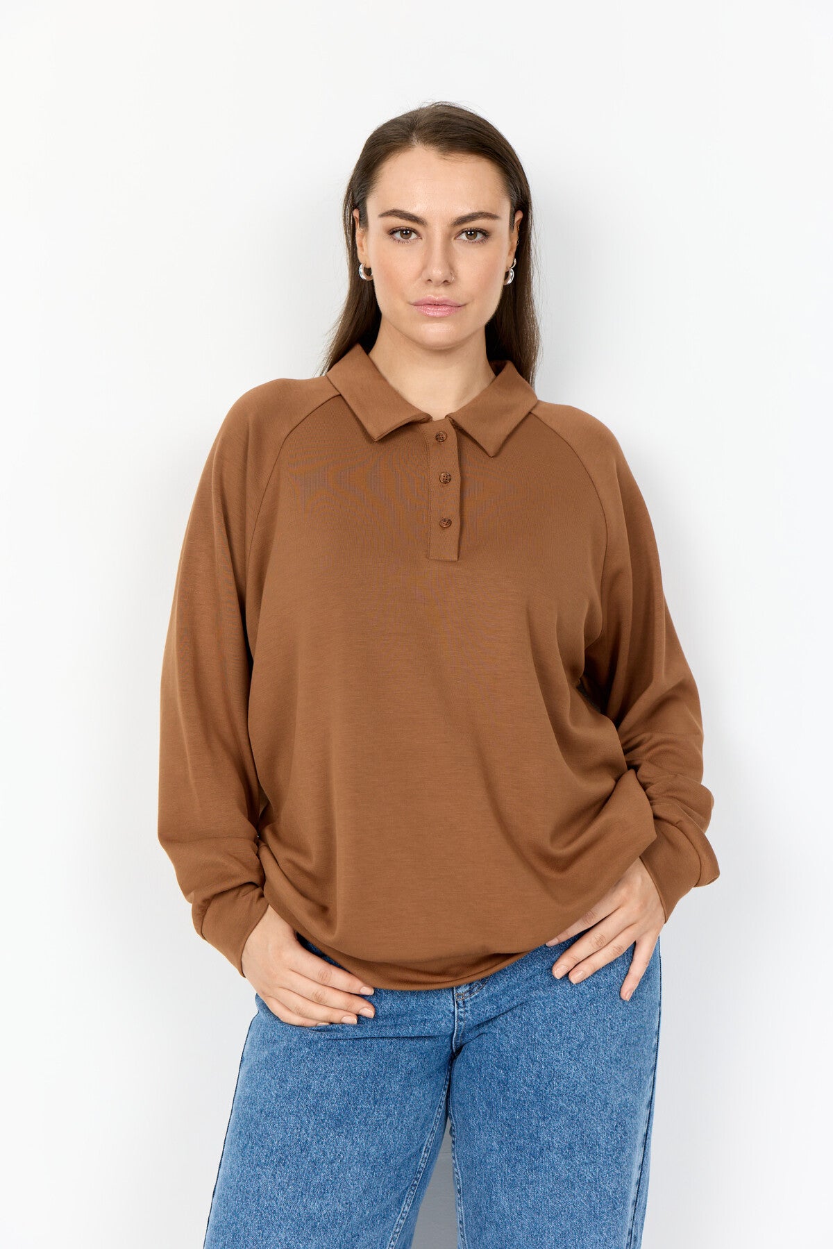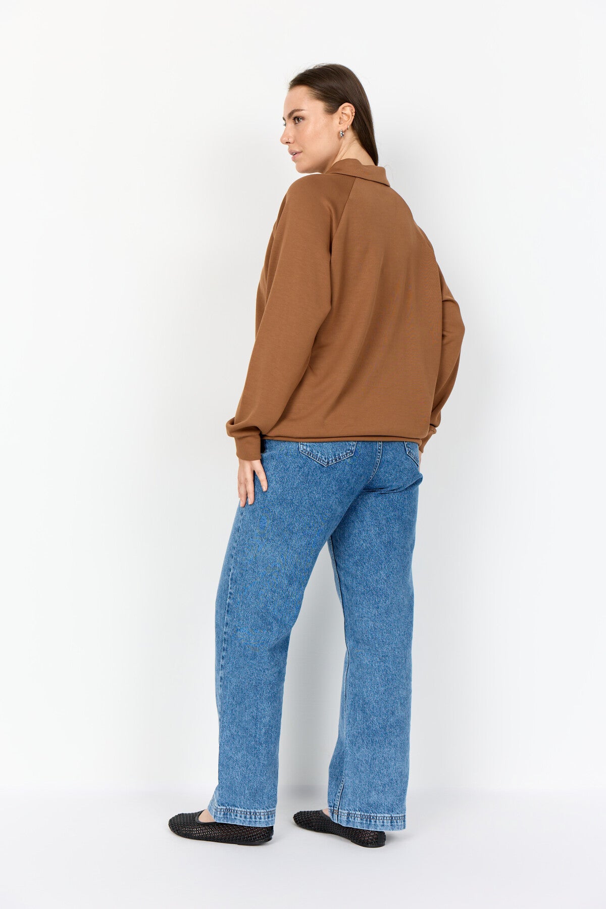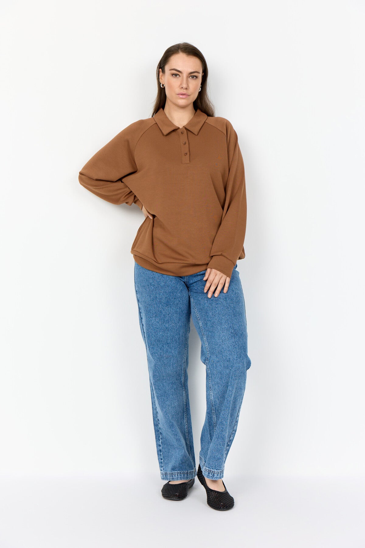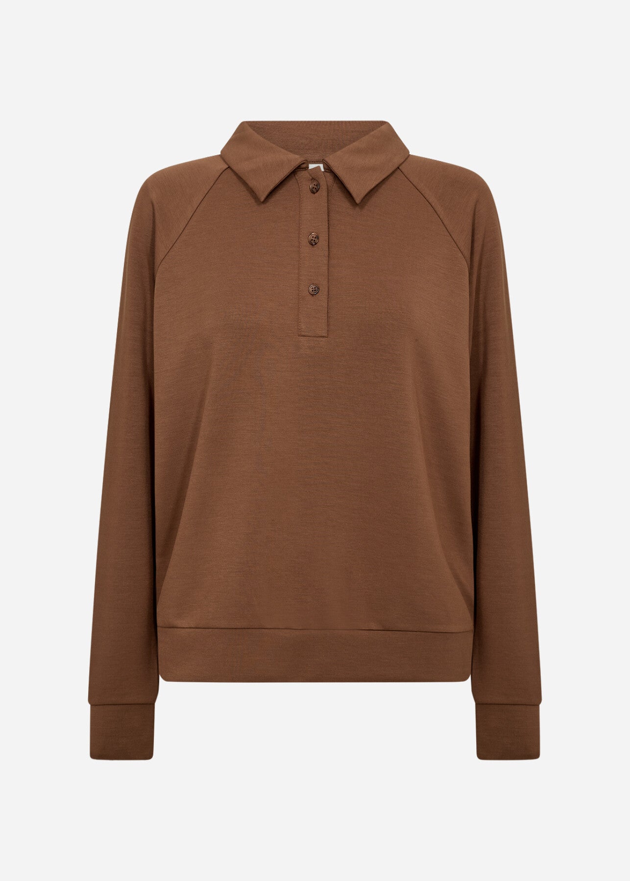 WA-SABINA 73 är en unik sweatshirt tillverkad i en blandning av 48% modal, 48% polyester och 4% elastan. Denna sweatshirt har en klassisk polokrage, en knappslå, en avslappnad passform och ribbade muddar för extra komfort. Kombinera den med dina favoritjeans för en stilren look, eller med våra matchande sweatpants för en bekväm men snygg look.