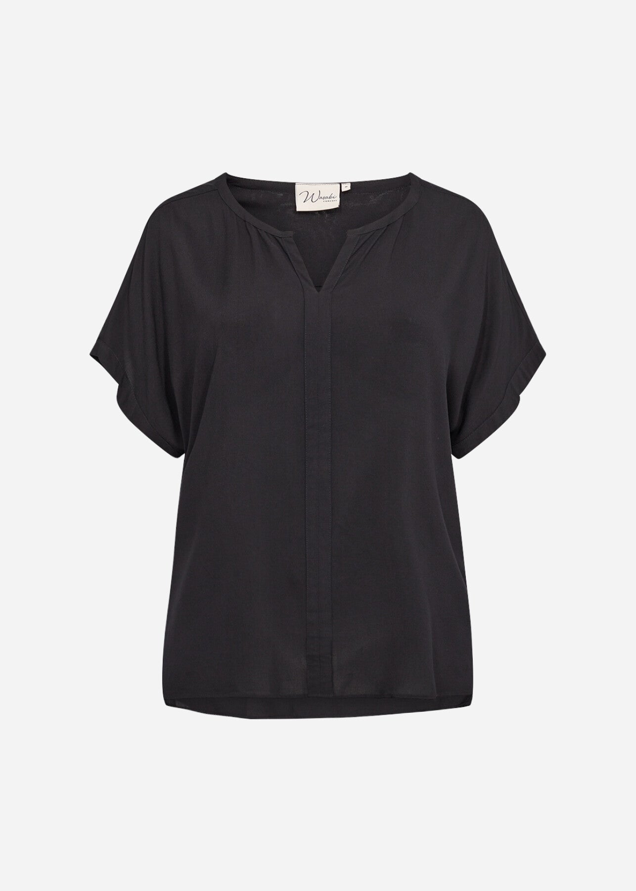 WA-Sia 1 är en klassisk blus tillverkad av 100 % LENZING™ ECOVERO™ viskos. Blusen har en delad hals, knäppning, korta ärmar, en vid passform och en fin detalj på baksidan. Styla den här feminina blusen med ett par byxor och sneakers för en klassisk vardagslook.