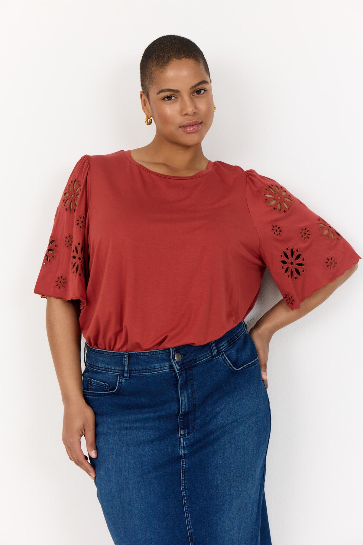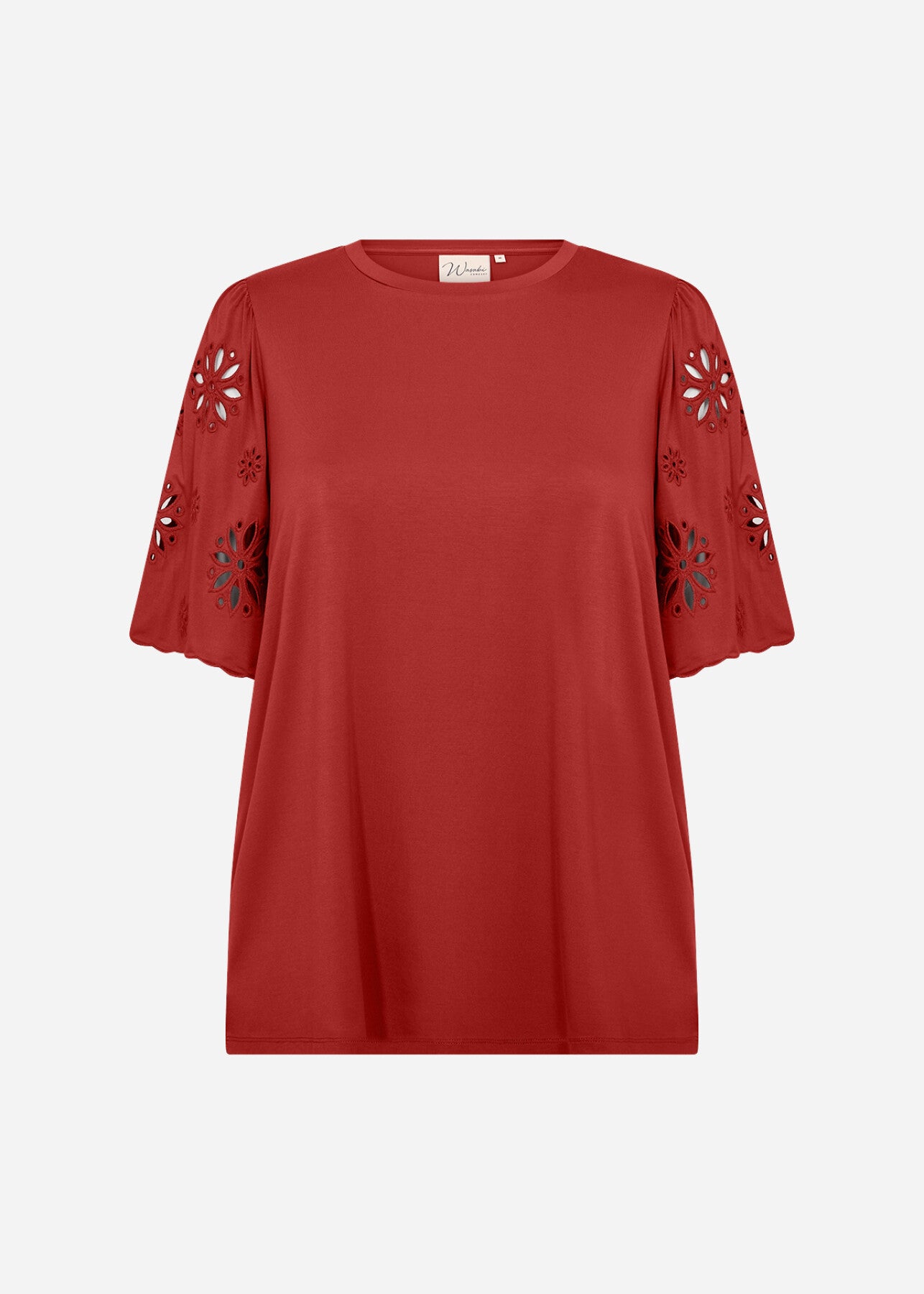 WA-STELLA 39 Blouse är tillverkad av 93% Lyocell och 7% Elastan. Den har fina utskurna detaljer på ärmarna och en rund halsringning. Kombinera den med skräddarsydda byxor eller en blommig kjol för en raffinerad look.