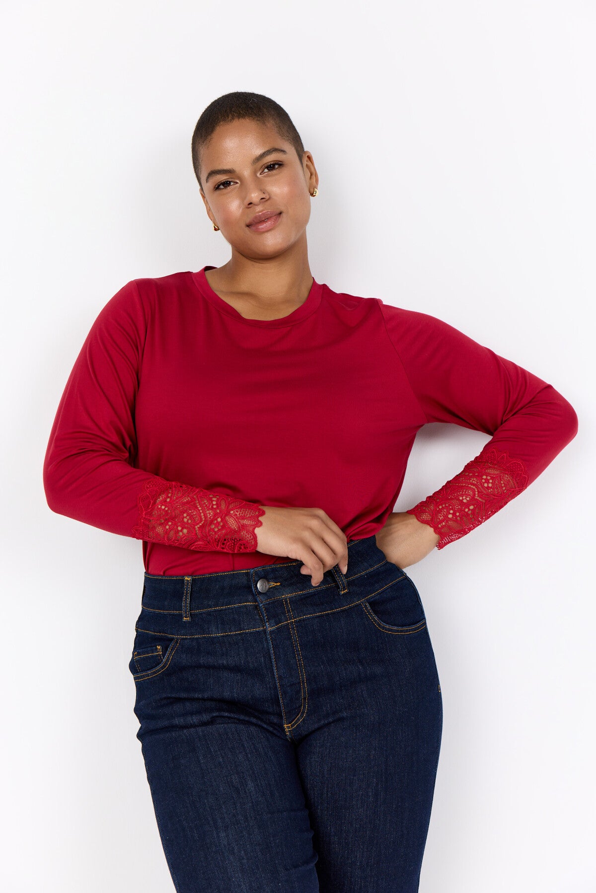 WA-STELLA 24 T-shirt är tillverkad av 93% Lyocell och 7% Elastan. Den har spetsmuddar och en klassisk rund halsringning med en bekväm passform. Styla den med skräddarsydda byxor eller en lång kjol för en raffinerad look.